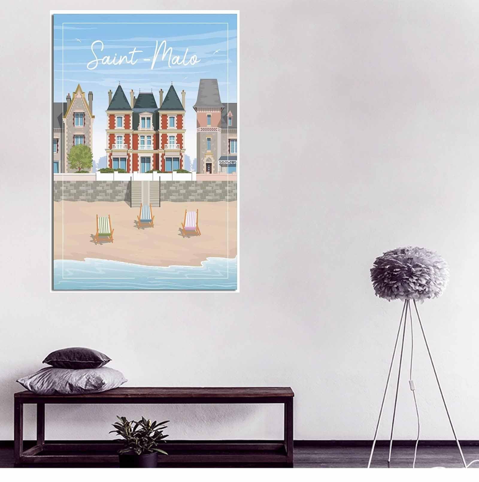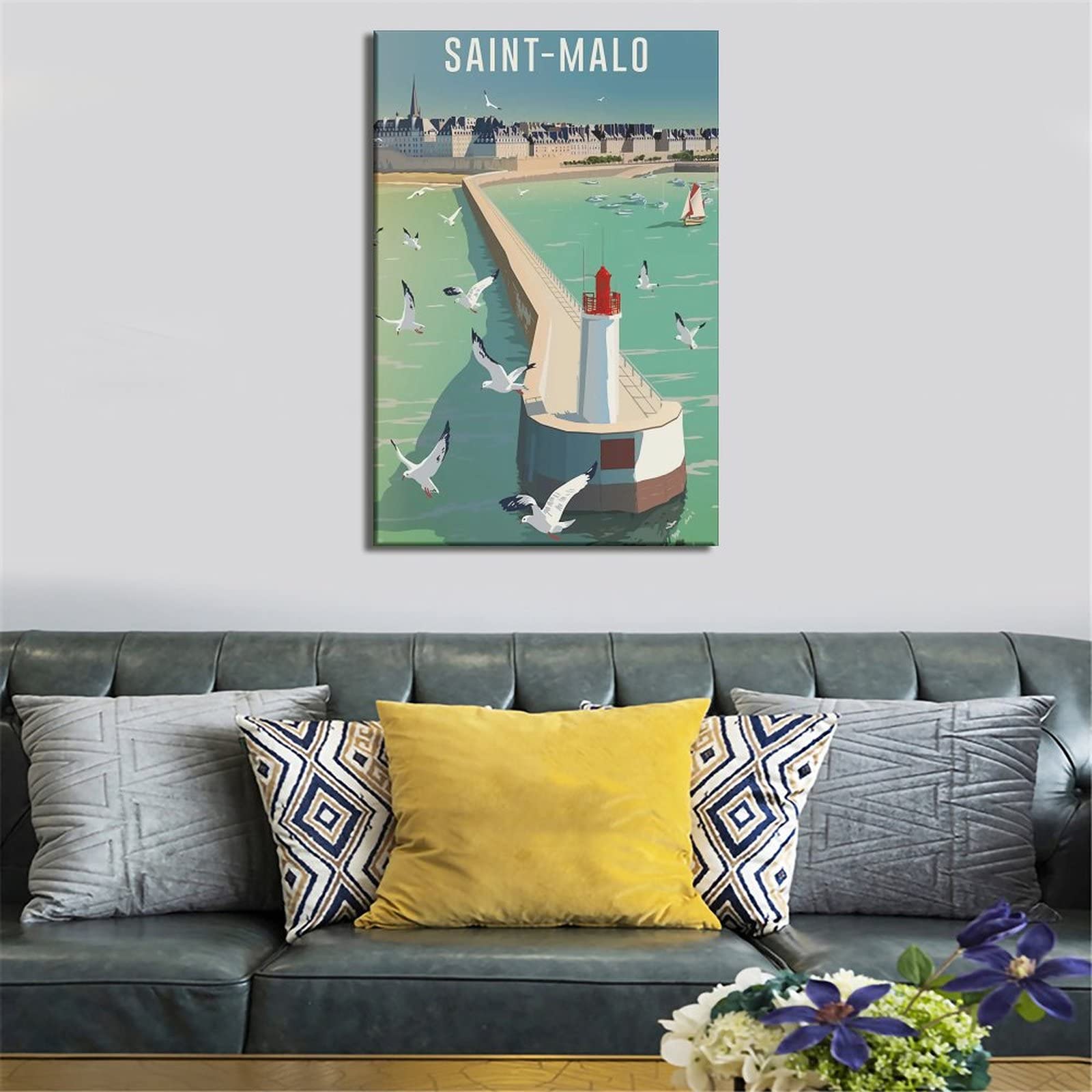 Saint Malo Frankreich Leinwanddruck 40x60cm - Vintage Reiseposter Wanddekoration