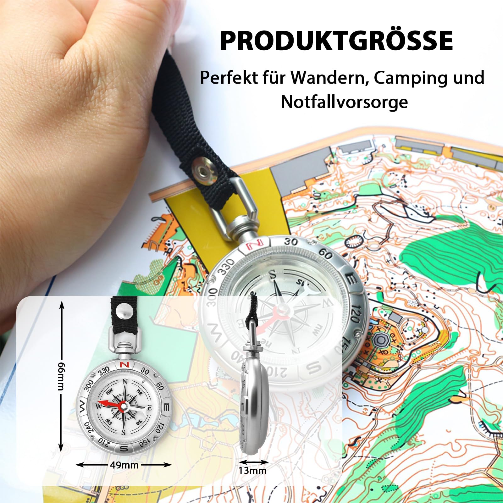 Verlier nie wieder die Richtung! Dieser JUXINE Kompass als Schlüsselanhänger ist dein perfekter Begleiter für alle Outdoor-Abenteuer. Aus robustem Aluminium, komplett wasserdicht und stoßfest. Der Bojenkompass zeigt zuverlässig Norden (N) und Süden (S) an, mit klarer Skala für Westen (W) und Osten (O). Einfach horizontal halten, drehen lassen - schon weißt du wo's langgeht. Mit praktischem Karabiner für Schlüsselbund oder Rucksack. Perfekt für Wandern, Camping, Geocaching oder als Notfallausrüstung. Kommt in einer schicken Tragetasche - auch ein super Geschenk für Scouts und Reisende!