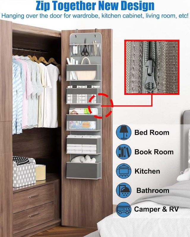 Einfach über die Bettkante hängen oder an Stühlen und Wänden befestigen. So hast du alles im Blick und musst nicht mehr im Dunkeln nach deinen Sachen suchen. Ein echter Game-Changer für mehr Ordnung im Leben!