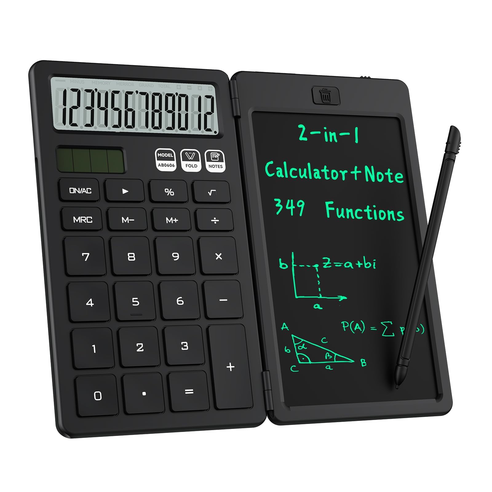 Wow, dieser 2-in-1 Taschenrechner von ROATEE ist echt praktisch! Er kombiniert einen vollwertigen Taschenrechner mit einem löschbaren LCD-Schreibtablett - perfekt für Schüler und Büroarbeit. Das faltbare Design macht ihn super kompakt, passt easy in jede Hosentasche oder Schultasche. Das 12-Bit HD-Breitbild-Display ist richtig klar und angenehm zu lesen. Besonders cool: Die Dual-Stromversorgung durch Solar und Akku sorgt dafür, dass du nie ohne Saft dastehst. Der integrierte Stift ist immer griffbereit, kein langes Suchen mehr! Das Tablett kann bis zu 50.000 Mal gelöscht werden - das spart ne Menge Papier und ist super umweltfreundlich. Aus robustem ABS-Kunststoff gebaut, hält das Teil echt was aus. Die großen Tasten liegen gut in der Hand und die Löschtaste ist clever platziert. Egal ob im Unterricht, bei Meetings oder unterwegs - mit diesem Alleskönner bist du bestens ausgerüstet! Einfach aufklappen, rechnen, Notizen machen und bei Bedarf alles mit einem Knopf löschen. So macht Lernen und Arbeiten Spaß!