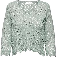• GRACE KARIN Damen Strickpullover Kurzarm - Sommerlicher Pulli Mit Lochmuster