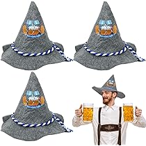 Prost! Mit diesen originalen Bayern-Hüten machst du auf jedem Oktoberfest was her. Das 2er-Set ist perfekt für Paare oder Freunde - so seid ihr gleich ein eingespieltes Team! Die Hüte aus weichem Filzmaterial sitzen angenehm auf dem Kopf und die klassische blau-weiße Kordel verleiht dem ganzen den echten bayerischen Flair. Mit den süßen Biermotiven bist du der Star auf jeder Party - ob Oktoberfest, Karneval oder Mottoparty. Die Hüte lassen sich leicht reinigen (einfach mit feuchtem Tuch abwischen) und passen sich verschiedenen Kopfgrößen an. Achtung: Durch den Versand können leichte Knicke entstehen, die lassen sich aber leicht ausbügeln. Auf die Plätze, fertig, Prost!