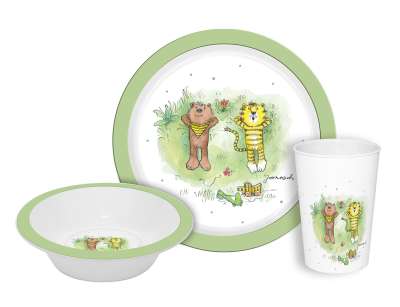 Mit dem Peppa Pig Geschirr macht Essen endlich wieder Spaß! Das 3-teilige Set aus stabilem Polypropylen (PP) besteht aus Teller, Schale und Becher - alles bunt bedruckt mit Peppa und ihren Freunden. Ist unzerbrechlich, lebensmittelecht und BPA-frei. Teller und Schale sind mikrowellengeeignet, also super zum Aufwärmen. Und nach dem Essen ab in die Spülmaschine - easy! Maße: Becher ca. 250 ml, Teller Ø 21,5 cm, Schale ca. 400 ml. Perfekt für Frühstück, Mittag oder Snacks. Dein Kind wird's lieben - und du die praktische Handhabung!