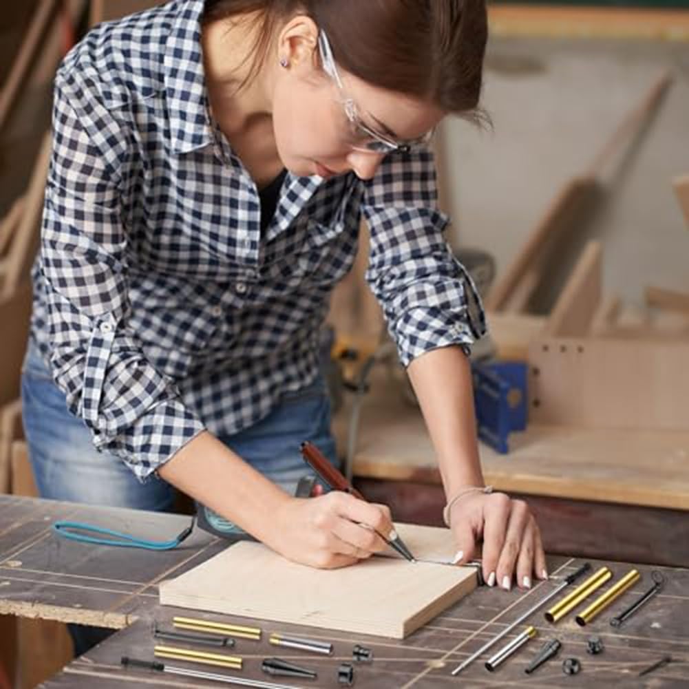 Bist du hobby-Drechsler und möchtest deine eigenen Stifte herstellen? Dieses 10-teilige Set ist perfekt dafür! Alle Teile sind in edlem Goldton gehalten und aus hochwertigem Messing gefertigt - robust und langlebig. Wichtig zu wissen: Im Set sind nur die Drehteile enthalten, keine Drehbank, Achse, Bohrer oder Holzrohlinge. Die musst du separat besorgen. Die Teile haben einen Durchmesser von 6,7 mm und sind für Slimline-Stifte konzipiert. Super praktisch für alle, die individuelle Stifte drechseln wollen - ob als Geschenk oder für den eigenen Gebrauch. Die glatten Oberflächen liegen gut in der Hand und die Qualität ist wirklich top. Mit diesem Set kannst du deine Kreativität voll ausleben und einzigartige Stifte kreieren. Einfach die Teile zusammenbauen und auf deine vorbereiteten Holzrohlinge stecken - schon entstehen wunderschöne, persönliche Stifte!