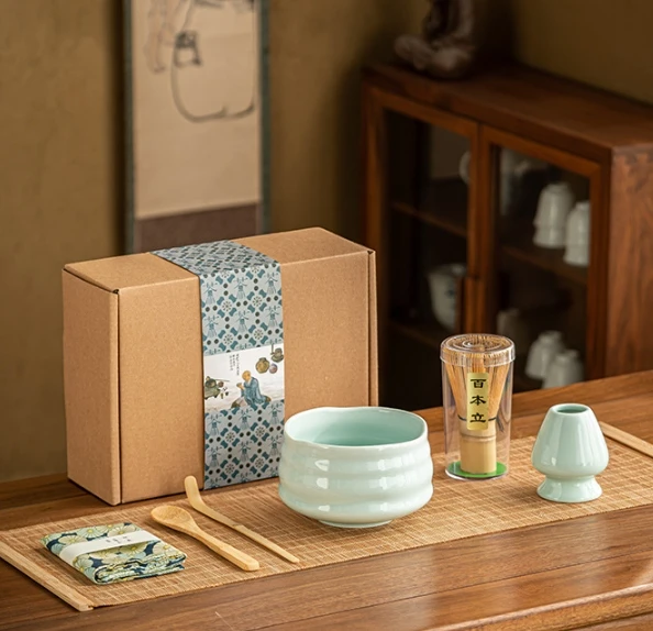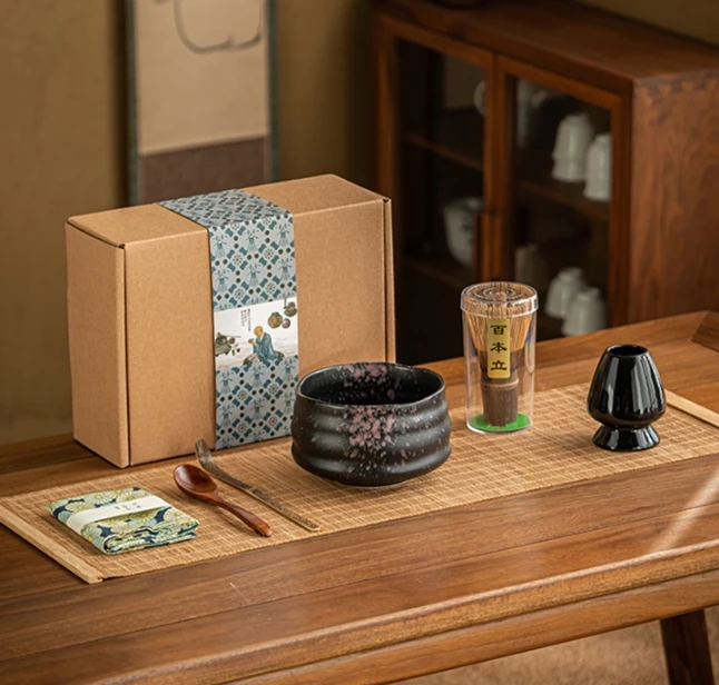 Echte japanische Matcha-Zeremonie zu Hause? Mit diesem kompletten Set kein Problem! Alles was du brauchst, um perfekten Matcha-Tee zuzubereiten - von professionellem Bambus-Besen bis zur praktischen Schale mit Ausgießer.\\n\\nIm Set enthalten:\\n• BAMBUS MATCHA-BESEN (Chasen) - 76 feine Borsten\\n• BAMBUS LÖFFEL (Chashaku) - für perfekte Dosierung\\n• KERAMIK-SCHALE (Chawan) - 500ml mit Adlerschnabel\\n• EDELSTAHL-SIEB - für klumpenfreies Pulver\\n• BESENHALTER - stylisch in Keramik\\n\\nSo bereitest du perfekten Matcha zu:\\n1. 1-2 Löffel Matcha-Pulver ins Sieb geben\\n2. Pulver in die Schale sieben (keine Klumpen!)\\n3. 70-80°C heißes Wasser hinzufügen\\n4. Mit Besen in W- oder M-Form schaumig rühren\\n5. Genießen!\\n\\nWarum dieses Set so besonders ist:\\n• HANDGEFERTIGTER BAMBUS - traditionelle Handwerkskunst\\n• ADLERSCHNABEL-DESIGN - tropft nicht, präzises Ausgießen\\n• HOCHWERTIGE KERAMIK - robust und langlebig\\n• EINFACHE REINIGUNG - einfach mit warmem Wasser abspülen\\n• AUTHENTISCHES ERLEBNIS - wie in Japan\\n\\nTipps für die Pflege:\\n• Besen vor erstem Gebrauch 2-3 Minuten in Wasser einweichen\\n• Nach Gebrauch sofort mit warmem Wasser reinigen\\n• An luftigen Ort trocknen lassen\\n• Nicht in Spülmaschine geben\\n\\nPerfekt für:\\n• Matcha-Liebhaber und Tee-Enthusiasten\\n• Entspannungs-Rituale am Morgen\\n• Besondere Geschenke für Feinschmecker\\n• Achtsamkeits- und Meditations-Praxis\\n• Kreative Matcha-Lattes und Desserts\\n\\nHol dir die japanische Tee-Kultur nach Hause - jeder Schluck wird zu einer kleinen Auszeit vom Alltag!