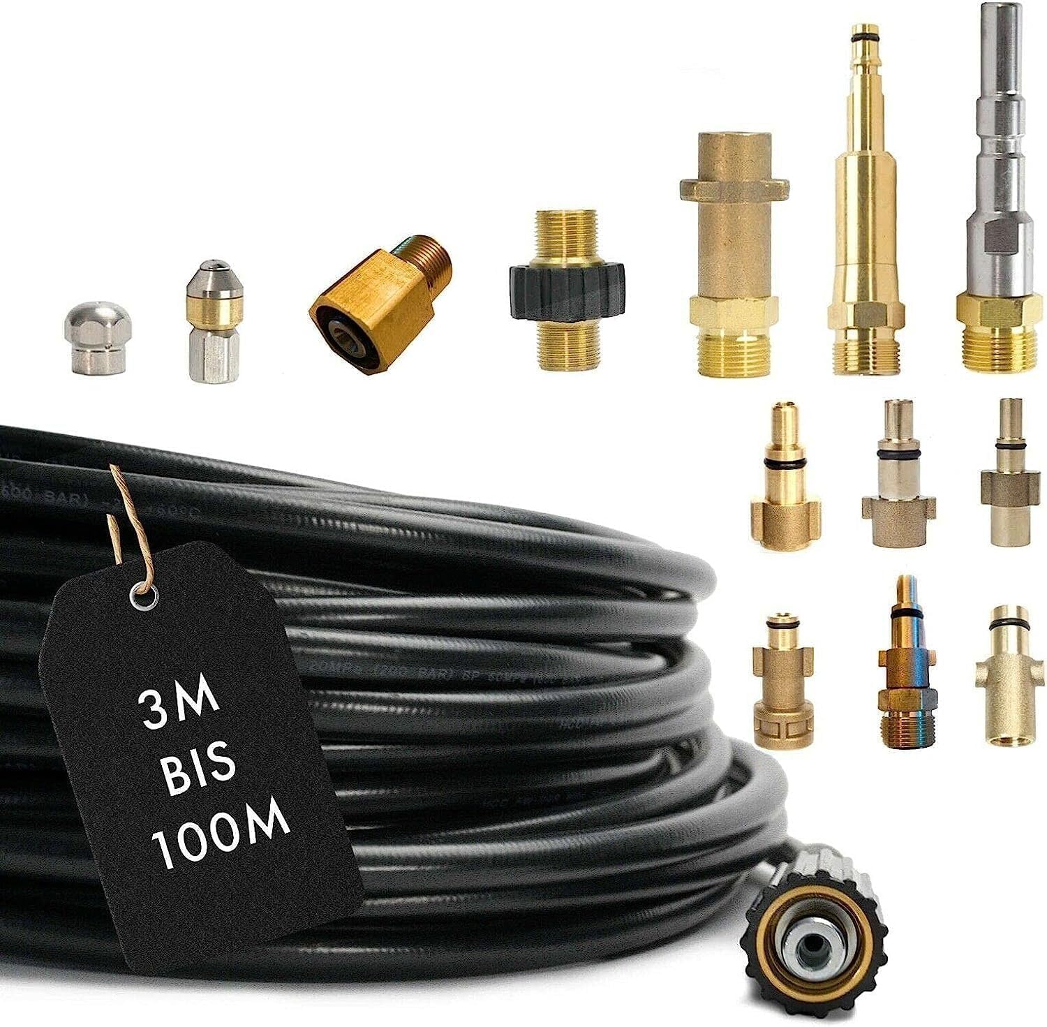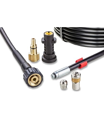 Wenn die Rohre verstopft sind, ist dieser Schlauch von M&M Smartek dein bester Freund! 10 Meter lang und 5-teilig mit allem was du brauchst: Adapter für Kärcher Geräte ab Baujahr Q4 2017, Kupplung aus Messing, und zwei verschiedene Reinigungsdüsen aus Edelstahl. Eine rotiert nach hinten, die andere hat vorne und hinten Öffnungen - für jede Verstopfung die richtige Lösung. Passt für Kärcher HD Serien und Kränzle Geräte mit M22 Gewinde. Damit kriegst du selbst hartnäckige Verstopfungen in Abflüssen und Dachrinnen weg. Einfach anschließen und loslegen - aber Vorsicht, mit dem Hochdruck nicht rumspaßen! Profi-Qualität für zuhause, damit alles wieder richtig fließt.