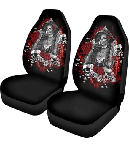 Boo! Mach dein Auto fit für Halloween! Dieses 4er-Set Sitzbezüge verwandelt deinen langweiligen Innenraum in eine gruselige Höhle. Mit Skelett- und Fledermaus-Motiven - einfach nur cool! Die hohe Rückenlehne (20 cm) gibt zusätzlichen Komfort und Schutz.