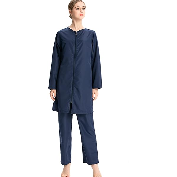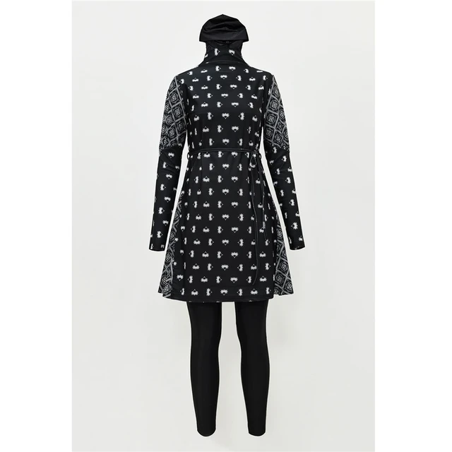 Endlich unbeschwert baden gehen - mit diesem stylischen Burkini-Set! Das 3-teilige Set besteht aus langärmligem Top, Schwimmhose und Kopftuch für volle Abdeckung. Das Material ist super elastisch und bietet trotzdem absolute Blicksicherheit. Mit UV50+ Schutz bist du auch vor Sonne geschützt. Der Schnitt passt sich jeder Figur an - von 1,60 m bis 1,75 m. Die hübschen Rüschen an Ärmeln und Halsausschnitt sehen richtig edel aus. Besonders praktisch: Das Set trocknet super schnell und ist chlorresistent. Perfekt für Strandurlaub, Schwimmbad oder Wassersport - so kannst du deine Werte wahren und trotzdem voll am Badespaß teilnehmen!