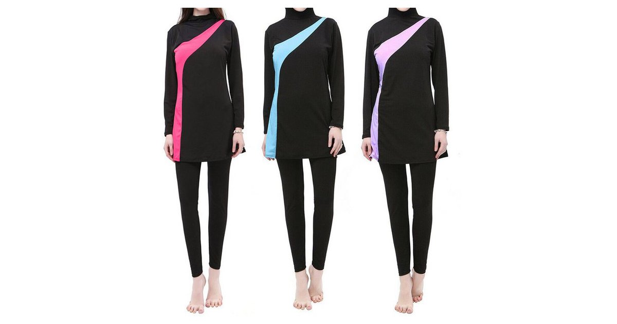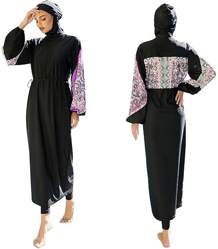 Schwimmen mit Bedeckung? Kein Problem mit diesem eleganten 3-teiligen Burkini von Modaworld! Das Set besteht aus Oberteil, hochtaillierter Hose und passendem Kopftuch - alles für maximalen Komfort und Diskretion.