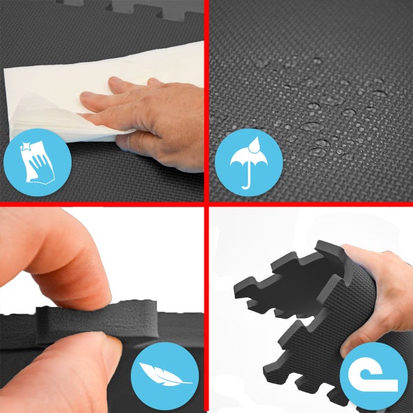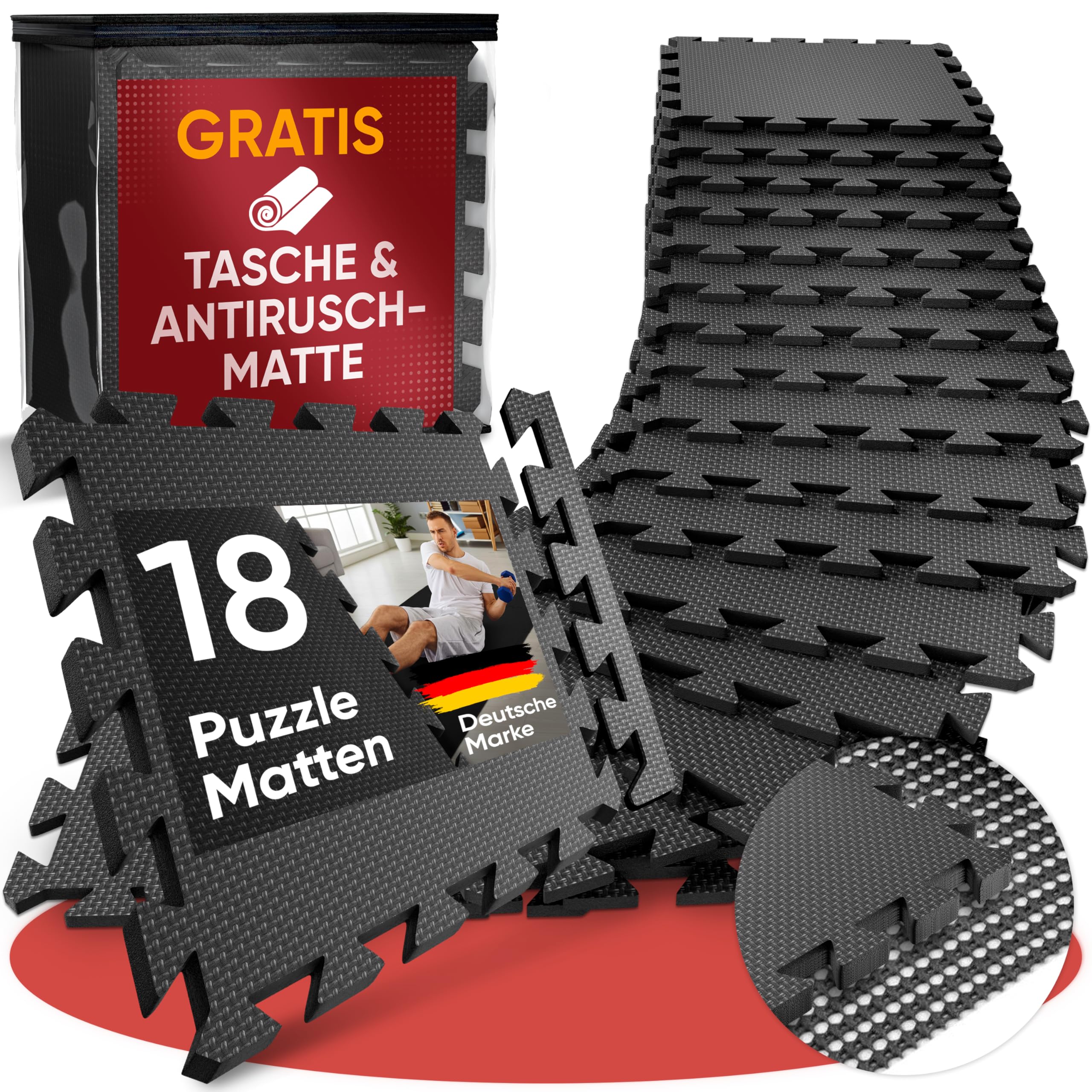 Yo Sportskanone! Diese FITLABS Bodenschutzmatten sind genau das, was dein Home-Gym braucht. Die 18 Puzzlematten aus weichem EVA-Schaum fügen sich easy zusammen und schaffen eine ca. 1,5 m² große Trainingsfläche. Super für Yoga, Fitness oder Turnübungen - deine Gelenke werden's dir danken! Die rutschfeste T-Struktur und die inklusive Anti-Rutsch-Matte sorgen für bombenfesten Halt, selbst bei schweißtreibenden Workouts. Und keine Sorge vor Schweiss oder Wasser - die Oberfläche ist abweisend und super einfach zu reinigen. Praktisch: Die mitgelieferte Zippertasche macht Transport und Aufbewahrung zum Kinderspiel. Du kannst die Matten beliebig erweitern oder zuschneiden - total flexibel! Ob als Fitnessunterlage, Yogamatte oder sogar als Pool-Abdeckung - diese Allrounder leisten überall gute Diente. Laborgeprüft und schadstofffrei, also auch für Familien mit Kindern super geeignet. Dein Boden ist vor Kratzern sicher und die Nachbarn freuen sich über die Schalldämmung. Egal ob Beginner oder Profi - mit diesen Matten machst du nichts verkehrt. Einfach auspacken, zusammenstecken und lostrainieren!