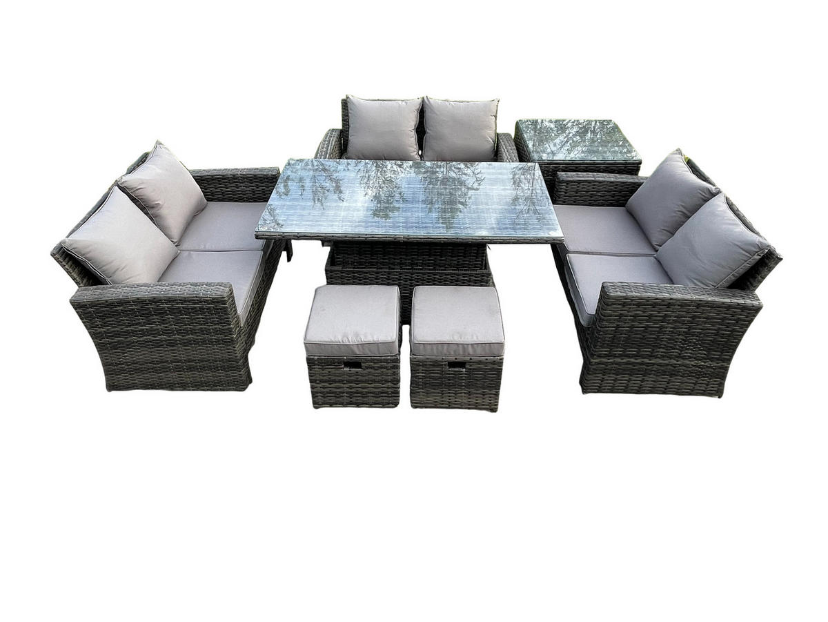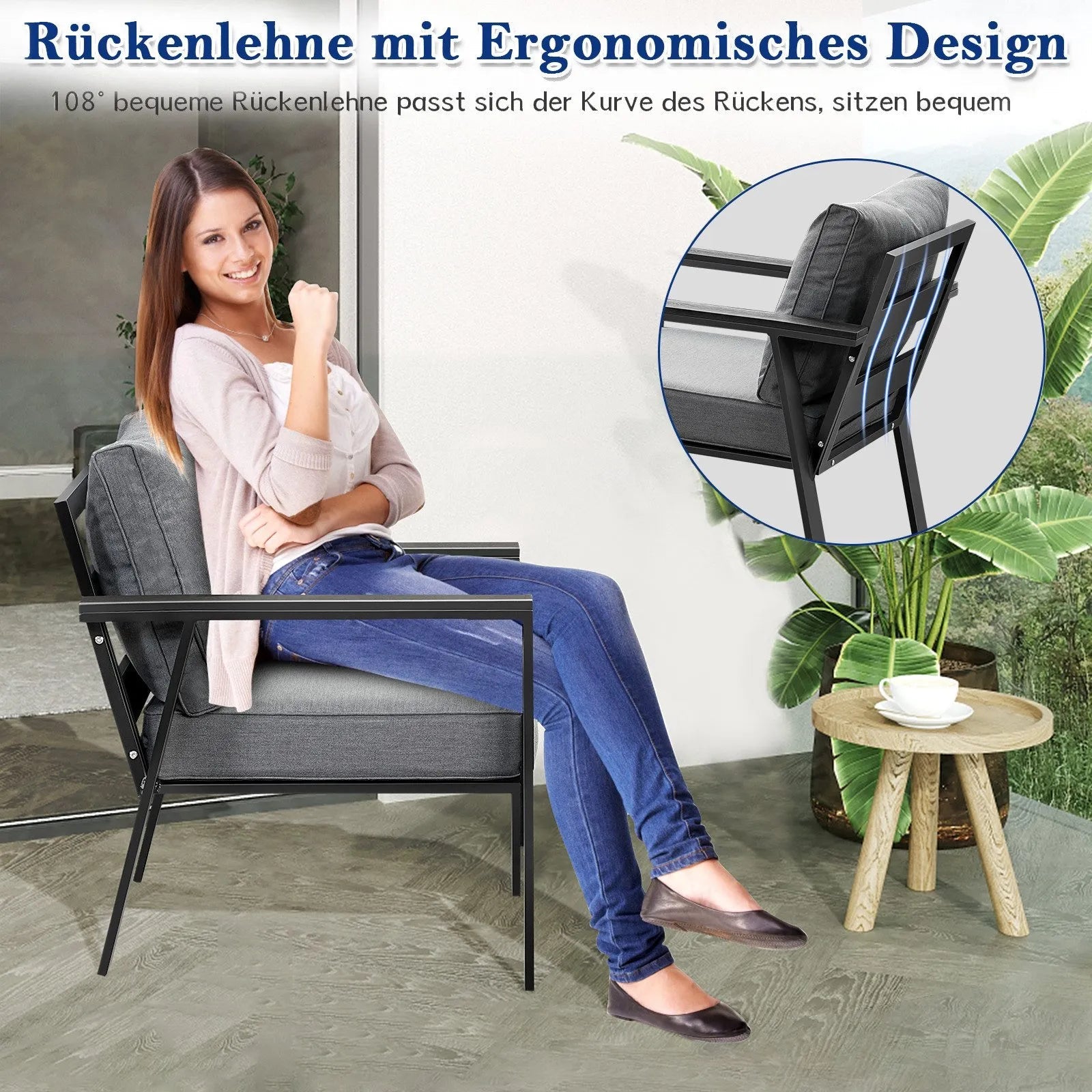 Perfekte Entspannung im Freien mit diesem wunderschönen 8-teiligen Gartenmöbel-Set! Das ALFRESCOLOUNGE Set verwandelt deine Terrasse oder deinen Garten in eine gemütliche Wohlfühl-Oase. Enthalten sind: 2 zweisitzige Sofas, 4 Einzelstühle und 2 praktische Beistelltische. Die robusten Rahmen aus verzinktem Stahl sorgen für maximale Stabilität und sind perfekt gegen Witterungseinflüsse geschützt. Die Tischplatten und Armlehnen aus hochwertigem Akazienholz betonen die natürliche Optik und sind besonders pflegeleicht. Das handgewebte Design aus groben Seilen sieht nicht nur toll aus, sondern bietet auch maximalen Sitzkomfort. Praktisch: Verstellbare Füße an den Stühlen sorgen für einen stabilen Stand auch auf unebenen Böden. Maße: Doppelsitzsofa 117x67x78 cm, Einzelstuhl 63x67x77 cm, Tisch 100x50x40 cm. Belastbarkeit: 150 kg pro Sitz, 60 kg pro Tisch. Perfekt für gemütliche Abende mit Familie und Freunden!