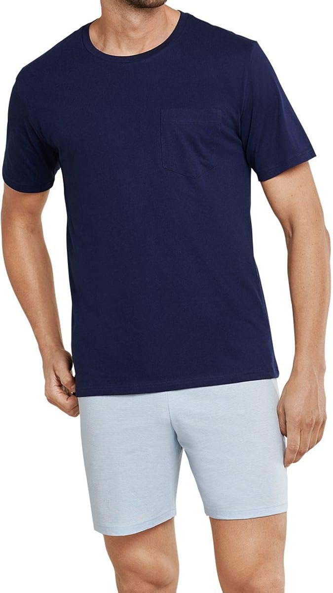 Perfekte Nachtruhe garantiert! Dieser 2-teilige Kurz-Schlafanzug von MoFiz ist genau das Richtige für warme Sommernächte. Aus 95% Modal und 5% Elastan gefertigt, fühlt sich der Stoff an wie eine zweite Haut - super weich, atmungsaktiv und dehnbar. Das Oberteil mit Rundhals-Ausschnitt und Kurzarm sitzt bequem, ohne zu zwicken. Die Schlafshorts mit elastischem Bund und Kordelzug geben dir genug Bewegungsfreiheit. Praktisch: Die beiden Seitentaschen für Kleinkram. Nicht nur zum Schlafen super, sondern auch perfekt für gemütliche Abende auf der Couch, zum Relaxen oder als Hausanzug. Die einfache Pflege macht's komplett: Einfach in die Maschine bei kalter Temperatur - oder noch besser von Hand waschen. Ein ideales Geschenk für deinen Mann, Vater, Sohn oder Freund - praktisch, bequem und sieht auch noch gut aus. In verschiedenen Einheitsfarben erhältlich, findest du garantiert den richtigen Ton. So schläft es sich einfach besser!