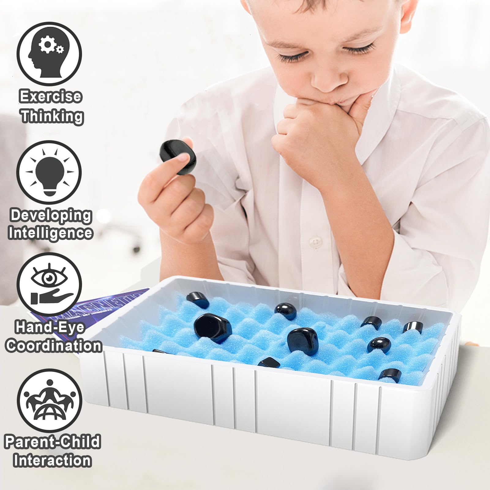 Total faszinierend dieses Magnet-Schachspiel! Im Set sind 20 magnetische Figuren in 5 verschiedenen Formen, plus Schnur und Aufbewahrungstasche. Die Magnete sind stark genug um zu halten, aber nicht zu stark für Kinderhände. Fördert logisches Denken, Konzentration und Reaktionsfähigkeit. Perfekt für unterwegs - die Figuren bleiben aneinander haften. Super für Familienabende, Reisen oder als Pausenspiel. Auch als Geschenk ideal zu Geburtstag oder Weihnachten. Macht nicht nur Spaß, sondern trainiert auch das Gehirn! Für Kinder und Erwachsene gleichermaßen spannend.