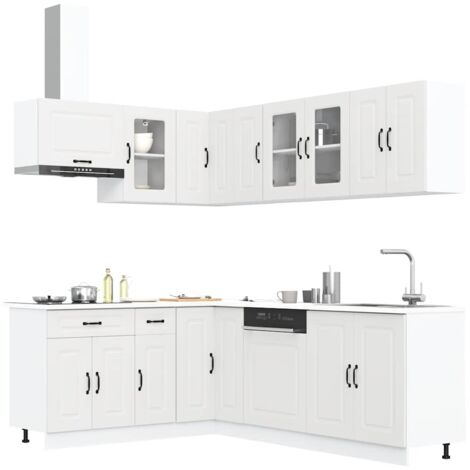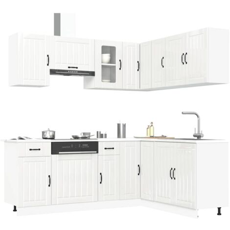 Deine neue Traumküche zum fairen Preis! Dieses 11-teilige Küchenschrank-Set von Emmtore bietet dir alles, was du für eine vollständige Küchenzeile benötigst. In elegantem Weiß gehalten, sorgt es für eine helle und freundliche Atmosphäre. Enthalten sind verschiedene Unterschränke (80cm, 60cm, 30cm, Eckunterschrank), Hängeschränke in verschiedenen Größen und eine Geschirrspülerblende. Aus robustem Holzwerkstoff gefertigt, ist die Küche feuchtigkeitsresistent und pflegeleicht. Die verstellbaren Füße ermöglichen einen perfekten Ausgleich auf unebenen Böden. Mit reichlich Stauraum für alle Küchenutensilien - ob Töpfe, Teller oder Vorräte. Einfach zusammenzubauen und sofort einsatzbereit für deine perfekte Küche!