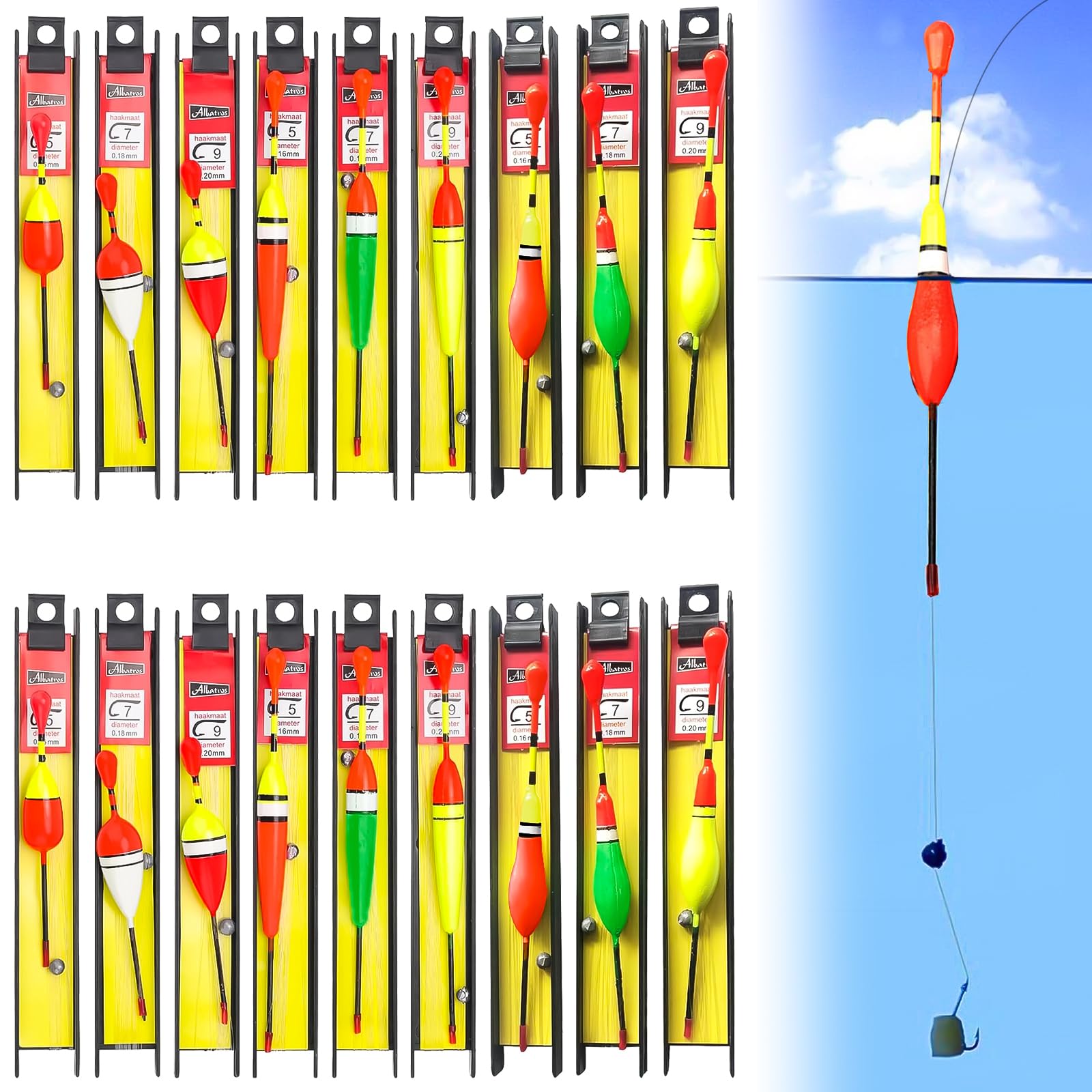 Perfektes Starterset für alle Angel-Anfänger! Dieses 18-teilige Posen-Set hat wirklich alles, was du für einen erfolgreichen Angeltag brauchst. Enthalten sind verschiedene Schwimmer-Formen - Wassertropfen (8cm), Säulenform (11,2cm) und Flaschenkürbisform (11,2cm) - damit du für jede Angel-Situation gerüstet bist. Dazu gibt's 6 Meter Angelschnur pro Set, Senkblei mit 0,5cm Durchmesser und Angelhaken in drei Größen (5#, 7#, 9#). Die Schwimmer aus hochwertigem Holz haben super Auftrieb und sind wasserdicht, sodass sie lange halten. Die leuchtenden Farben machen es einfach, Bisse zu erkennen, und die 360-Grad-Drehung verhindert lästiges Verheddern der Schnur. Egal ob du an See, Fluss, Bach oder Teich angelst - dieses Set ist dein zuverlässiger Begleiter. Super praktisch für Karpfen, Forellen, Aale und viele andere Fischarten. Einfach zusammengebaut und schon kann der Angelspaß beginnen!