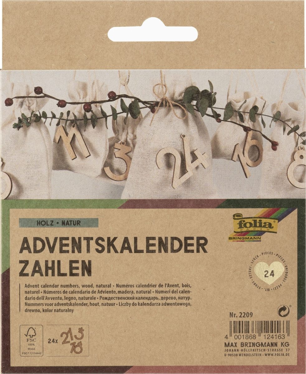 Gestalten Sie Ihre ganz persönliche Adventszeit mit diesem wundervollen DIY-Bastelset von folia! Das 72-teilige Set enthält alles für einen individuellen Adventskalender: 24 Papiertüten in drei verschiedenen Größen (14x7x24,8cm, 12x6x21,2cm, 10x5,5x18,2cm) mit sechs bezaubernden Weihnachtsmotiven, 24 nummerierte Aufkleber für die Tage 1-24 und 24 rote Holzklammern zum Befestigen. Alle Materialien sind FSC-zertifiziert - die Papiertüten aus FSC Mix Papier, die Klammern aus FSC 100% Holz. So wird Nachhaltigkeit zum festlichen Erlebnis! Perfekt für die ganze Familie: Befüllen Sie die Tüten mit kleinen Überraschungen, Süßigkeiten oder lieben Botschaften und gestalten Sie so Ihre eigene Advents-Tradition. Die Tüten können an einer Leine aufgehängt, an einem Kranz befestigt oder im Raum verteilt werden. Nach Weihnachten lassen sich die dekorativen Tüten wunderbar für andere Bastelprojekte oder als Geschenkverpackung weiterverwenden. Schaffen Sie Vorfreude und gemütliche Atmosphäre in der Vorweihnachtszeit - dieses Set macht das Warten auf Weihnachten zum kreativen Vergnügen für Groß und Klein!