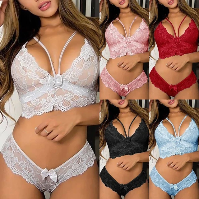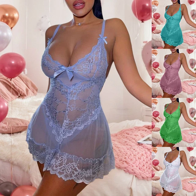 SEDEX 3-teiliges Dessous Set - Spitzen Negligee Mit BH Und Slip In Transparent