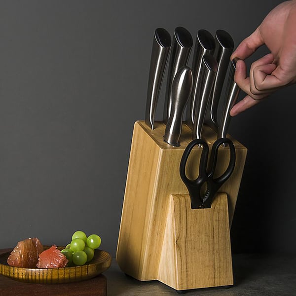 Wow, dieses 12-teilige Messerset von Karaca hat wirklich alles, was du in der Küche brauchst! Im Set sind 5 hochwertige Edelstahl-Messer enthalten: Kochmesser 20cm, Universalmesser 20cm, Brotmesser 20cm, Ausbeinmesser 13cm und Schälmesser 9cm. Dazu kommen 5 praktische Küchenutensilien - Servierlöffel, Schaumlöffel, Pastalöffel, Schaumkelle und Suppenkelle. Und als Bonus ist noch ein robustes Schneidebrett dabei! Die ergonomischen Griffe liegen super in der Hand und die scharfen Klingen schneiden wie durch Butter. Der kompakte Messerblock und der Utensilienhalter sorgen für Ordnung in deiner Küche. Alles aus langlebigem Edelstahl, der täglichen Gebrauch problemlos standhält. Einfach per Hand waschen, und deine Küchenhelfer bleiben lange wie neu. Von der Vorbereitung bis zum Servieren - mit diesem Set meisterst du jede kulinarische Herausforderung!