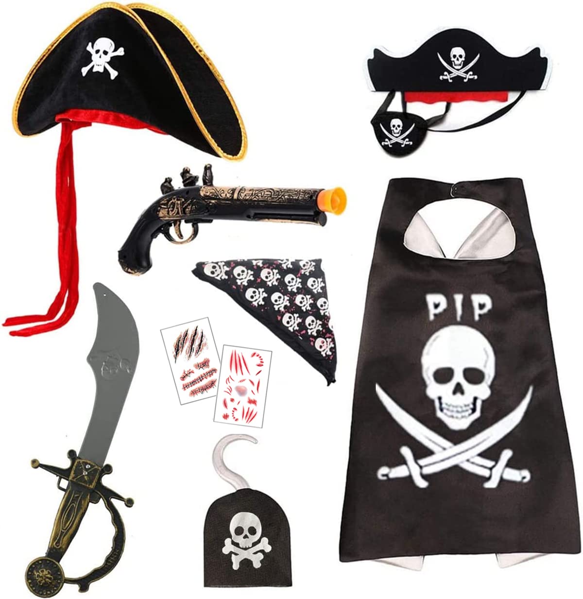 Ahoy, Matrose! Dieses 12-teilige Piraten-Set macht jede Party zum Abenteuer! Enthält 6 Piratenhüte und 6 Augenklappen aus weichem Filz. Die Hüte mit elastischem Gummiband passen den meisten Kindern. Perfekt für Piraten-Partys, Halloween, Karneval oder Rollenspiele! Einfach aufsetzen und in die Piratenrolle schlüpfen. Damit werden kleine Seeräuber zu großen Abenteurern! Super für Geburtstage oder Mottopartys - garantiert viel Spaß!