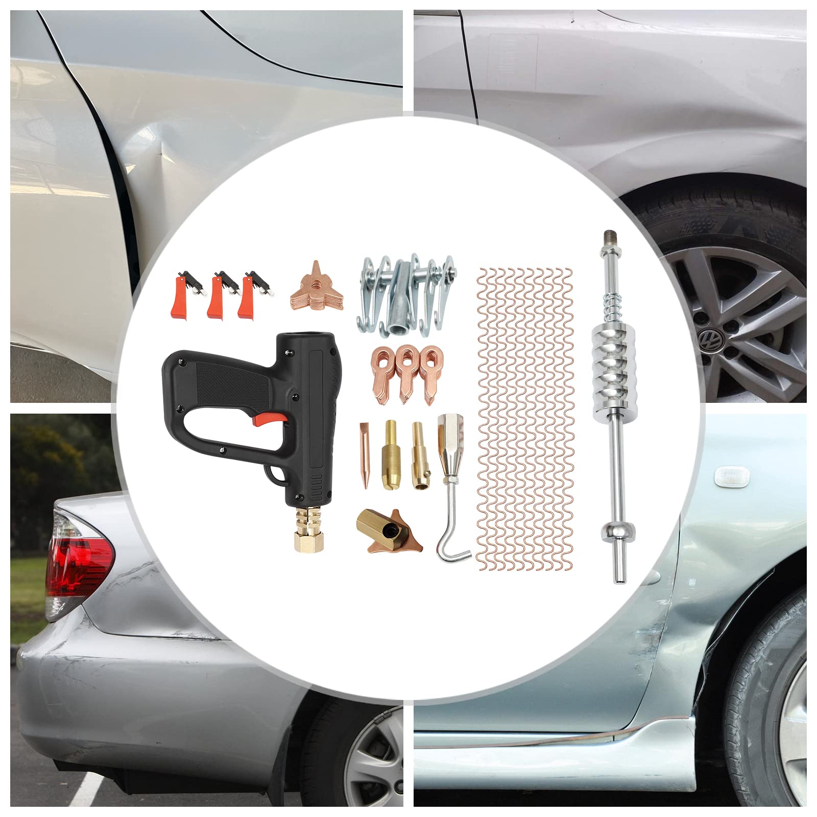 Ärgerliche Dellen im Auto? Mit diesem WAONIQ Set wirst du sie ganz ohne Lackarbeiten los! 52 verschiedene Zuglaschen in blau, rot und lila - für jede Delle die richtige Größe. Einfach die passende Lasche aufkleben, mit dem Spezialhammer ziehen und schon ist die Beule weg. Das Beste: Dein Originallack bleibt komplett unberührt! Super für kleine Unfallschäden, Hagelschäden oder diese lästigen Parkrempler. Funktioniert nicht nur am Auto, sondern auch an Kühlschränken, Motorrädern und anderen Metallflächen. Alles aus robustem Nylon - hält ewig und ist super leicht. Ob Profi-Werkstatt oder Heimwerker - mit diesem Set sparst du dir teure Werkstattrechnungen. Einfach mal ausprobieren und staunen, was man so alles selbst reparieren kann!
