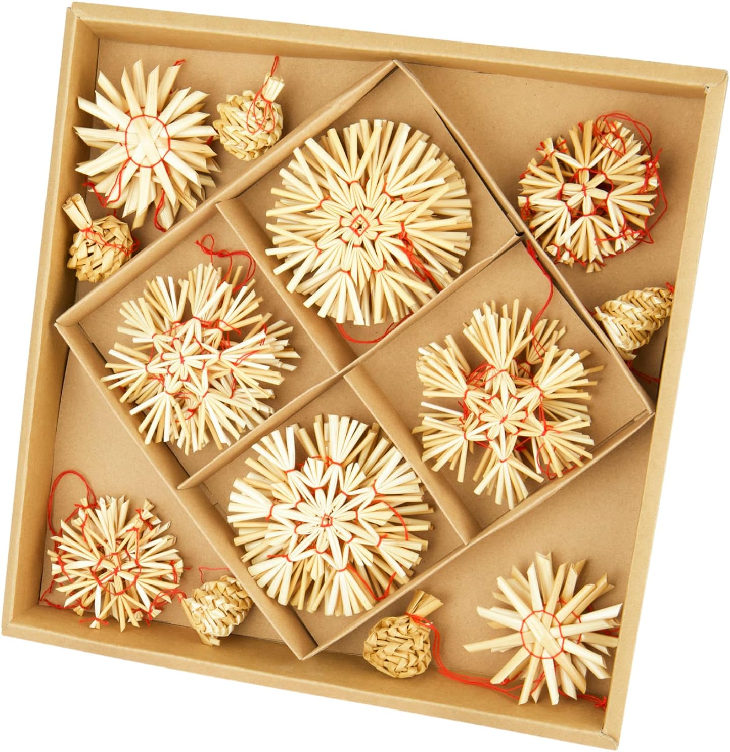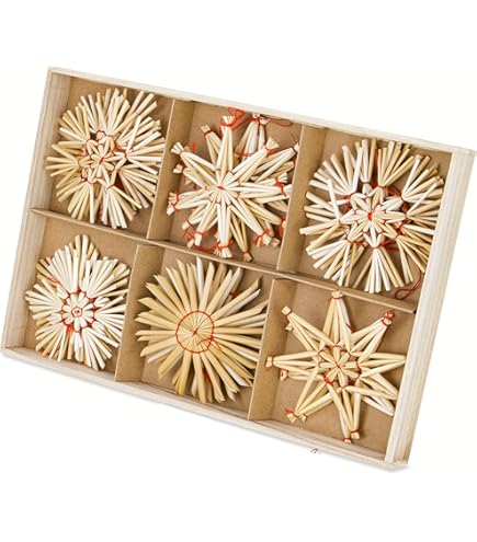 Diese süßen Strohsterne bringen nostalgischen Weihnachtszauber in dein Zuhause! Im Set sind 12 filigrane Sterne mit je 11cm Durchmesser - perfekt für den Weihnachtsbaum, Geschenke oder zum Dekorieren von Zweigen. Das natürliche Strohmaterial sieht einfach urig schön aus und passt zu jedem Weihnachtsstil. Jeder Stern hat eine Aufhängung, also einfach irgendwo dranhängen und schon wirkt es weihnachtlich! Besonders hübsch auch an Adventskränzen oder Girlanden. Achtung: Wegen der kleinen Teile nicht für Kinder unter 3 Jahren geeignet - Erstickungsgefahr! Aber für alle anderen ist das eine wunderbare, umweltfreundliche Dekoration, die Jahr für Jahr wiederverwendet werden kann. Einfach in der Schachtel aufbewahren und nächstes Jahr wieder herausholen - so macht Weihnachten Spaß!