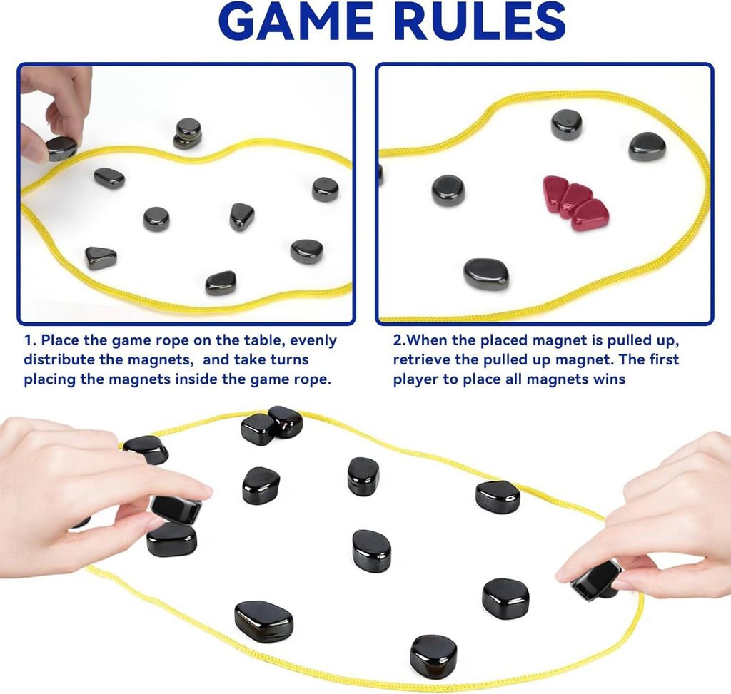 Das Spielprinzip ist einfach aber fesselnd: Platziere deine Magnete so, dass sie nicht an die des Gegners stoßen. Wenn Magnete zusammenkleben, müssen sie raus - wer zuletzt noch Steine hat, gewinnt! Super für strategisches Denken und logisches Planen.