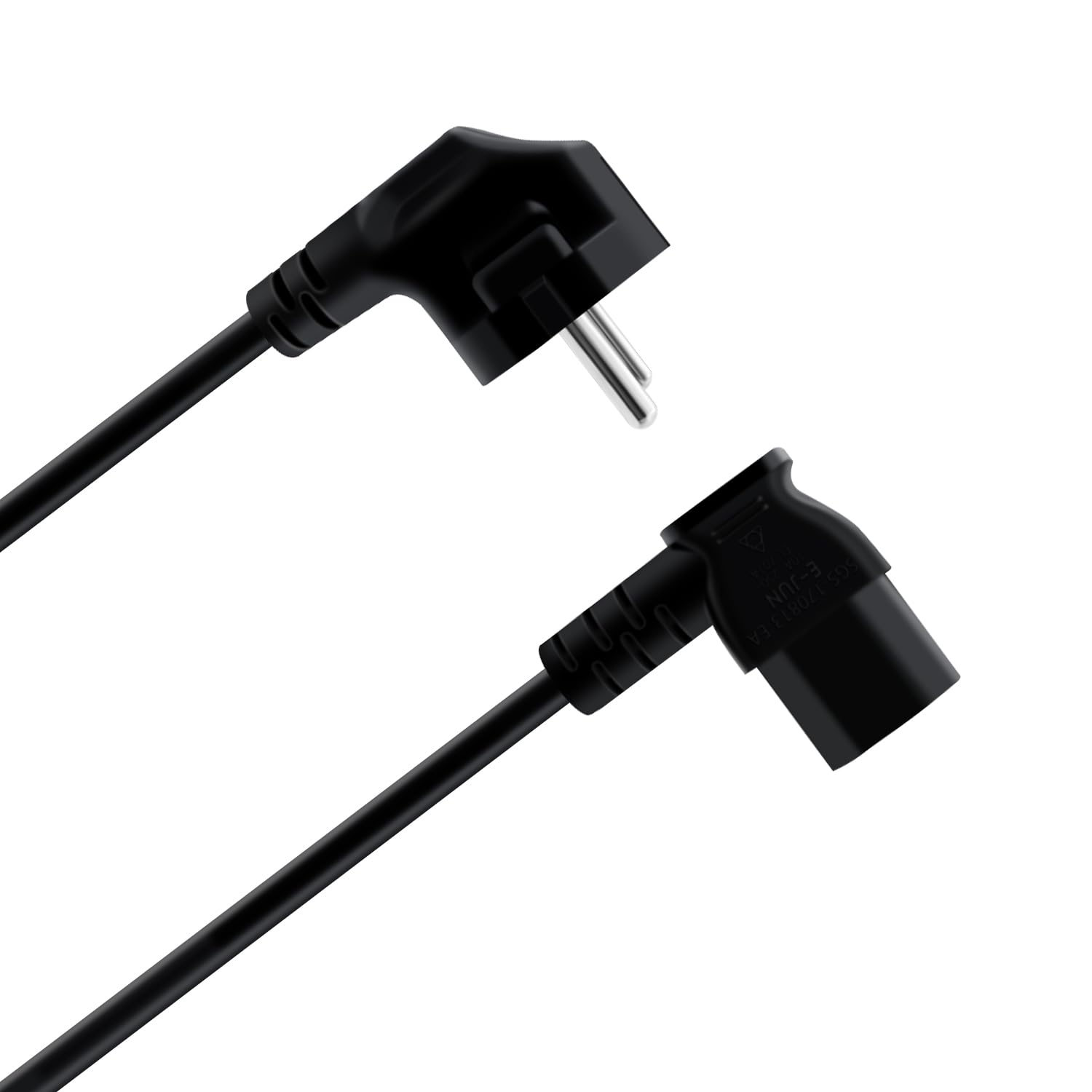 Perfekt für enge Platzverhältnisse! Dieses Kaltgerätekabel mit 90-Grad-Winkelstecker ist ideal, wenn hinterm Schreibtisch oder im Serverschrank wenig Platz ist. Mit 0,5m Länge genau richtig für die meisten Anwendungen. Das Kabel hat einen Schutzkontaktstecker Typ F (CEE 7/4) und eine C13-Buchse - also der Standard für Computer, Monitore, Drucker und Server. Hergestellt aus reinem Kupfer mit 3x0,75mm² Querschnitt für optimale Leitfähigkeit. Bis 250V und 10A belastbar - mehr als genug für die meisten Geräte. Der flexible PVC-Mantel ist robust und langlebig. Die Stecker sitzen bombenfest in der Steckdose - da lösen sich keine Kontakte! Ein praktisches Kabel, das wirklich hält, was es verspricht!