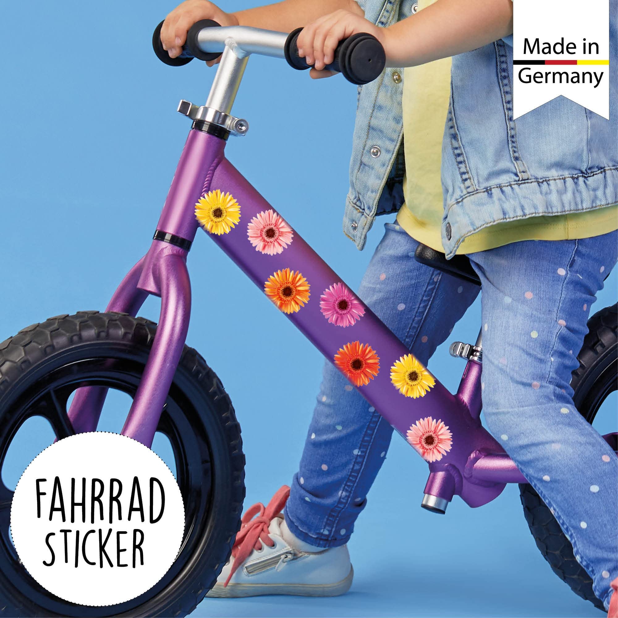 Wow, was für eine coole Aufkleber-Sammlung! Dein Fahrrad sieht langweilig aus? Damit machst du es zum absoluten Hingucker. 35 verschiedene Sticker mit süßen Hibiskus-Blüten in pastelligen Farben warten darauf, dein Bike zu verschönern. Einfach abziehen, aufkleben - fertig! Halten super auf Metall, Holz und Glas. Perfekt als Geschenk zum Geburtstag, zu Weihnachten oder zur Einschulung. Übrigens: Die Sticker haften auch auf Skateboards, Rollern oder E-Scootern. Made in Germany - da weißt du, was du hast! So macht Fahrradfahren doppelt Spaß!