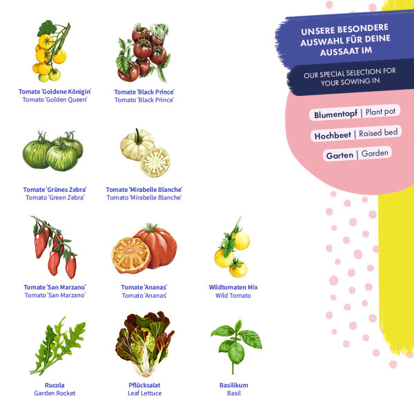 Eine Zeitreise für deinen Garten! Diese besondere Saatgut-Box enthält 9 historische Tomatensorten, die schon unsere Großeltern angebaut haben. Von der riesigen 'Ananas'-Fleischtomate über die würzige 'San Marzano' bis zur exotischen 'Schwarzen Krim' - hier findest du echte Raritäten. Alle Sorten sind samenfest, das bedeutet du kannst dein eigenes Saatgut gewinnen. Die dekorative Box ist nicht nur praktisch, sondern sieht auch super als Geschenk aus. Mit QR-Code zur detaillierten Anleitung in fünf Sprachen - so gelingt der Anbau garantiert. Perfekt für Garten, Hochbeet oder sogar den Balkon. Ob frisch vom Strauch, in der Soße oder getrocknet - diese Tomaten bringen geschmackliche Vielfalt in deine Küche. Jedes Samentütchen hat Aussaat-Hinweise, also auch für Anfänger bestens geeignet. Baue nicht nur Tomaten an, sondern bewahre auch ein Stück Geschichte! Für alle, die mehr wollen als die langweiligen Supermarkt-Tomaten.
