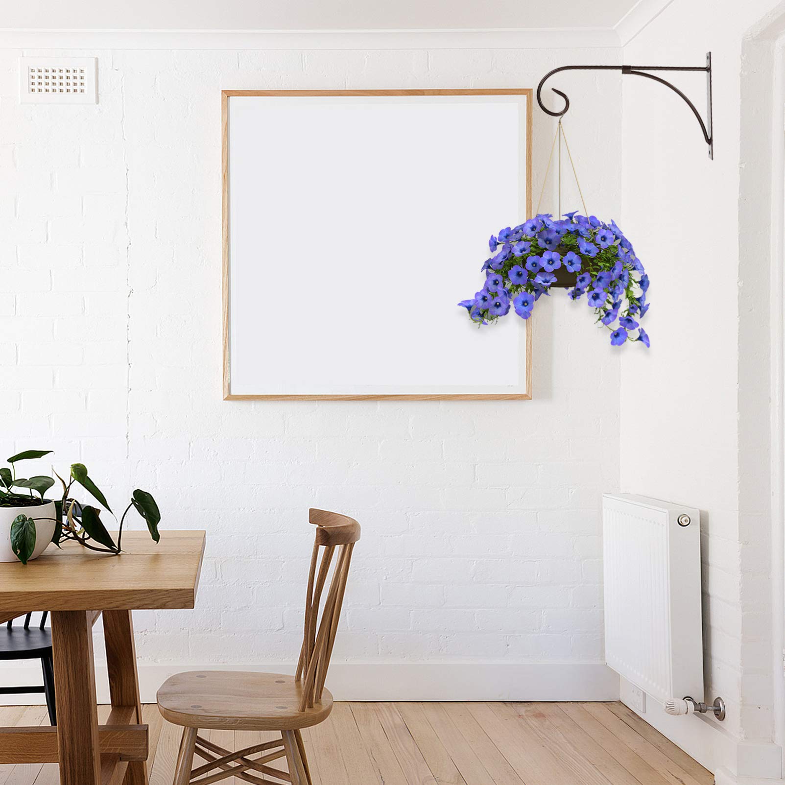 Mehr Grün - weniger Platzprobleme! Mit diesen stylischen Blumentopf-Aufhängern holst du dir ganz einfach mehr Pflanzen in deine vier Wände oder auf den Balkon. Das 2er-Set aus stabilem Eisen ist super einfach zu montieren und hält auch schwere Töpfe sicher fest. Die weiße Farbe passt zu jedem Einrichtungsstil und die dreieckige Form gibt extra Stabilität. Ob für dekorative Blumentöpfe, duftende Kräuter, Vogelhäuschen oder sogar Laternen - diesen Haltern ist alles recht. Besonders praktisch für kleine Balkone oder Terrassen wo der Platz knapp ist. Einfach an die Wand schrauben, Topf reinstellen und schon wird's grün! Rostfrei und wetterfest - also auch für draußen bestens geeignet. So wird jeder noch so kleine Winkel zum grünen Paradies!