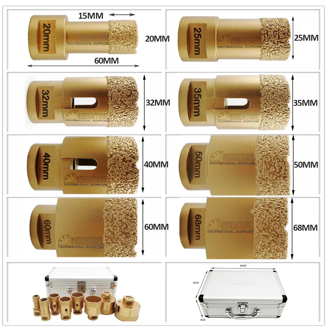 Professionelles Diamant-Bohrset für alle Heimwerker! 8 Teile mit Größen von 20-68mm - für jede Bohrung das richtige Werkzeug! Perfekt für Fliesen, Keramik, Granit, Marmor und Beton. Vakuumgelötet - extrem langlebig und präzise. Passt auf die meisten Winkelschleifer (für Bohrer brauchst du ggf. Adapter). Nass oder trocken bohrbar - super flexibel! Macht saubere Löcher ohne Ausbrüche - kein Ärger mehr mit kaputten Fliesen! Ob für Handtuchhalter, Spiegel oder Steckdosen - damit wird jedes Bohrprojekt zum Kinderspiel! Einfach ein Must-Have für jede Werkstatt!