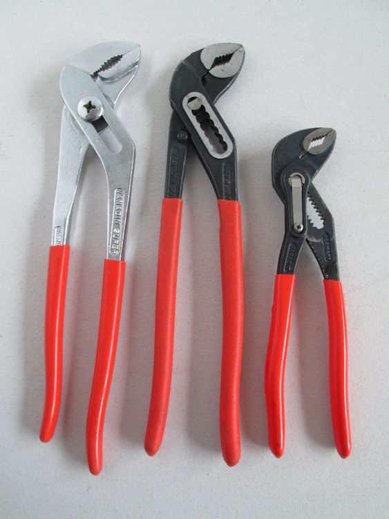 Dieses 3-teilige Wasserpumpenzangen-Set gehört in jede Werkzeugkiste! Mit den Größen 20cm, 25cm und 30cm bist du für jede Aufgabe gerüstet. Die verstellbaren Zangen greifen sicher und lassen sich mit Druckknopf einfach anpassen. Aus legiertem Stahl gefertigt sind sie rostfrei, korrosionsbeständig und extrem langlebig. Perfekt für Heimwerker und Profis: Festsitzende Muttern, Bolzen oder Rohre lassen sich damit leicht lösen oder festziehen. Die wärmebehandelten Zähne bieten optimalen Grip ohne aburutschen. Mit der praktischen Aufbewahrungstasche bleiben die Zangen ordentlich verstaut und griffbereit. Öffnungsweiten von 25mm bis 53mm decken die meisten Standardgrößen ab. Ob für die Heizungsinstallation, Sanitärarbeiten oder Reparaturen am Auto - diese Zangen machen jede Arbeit einfacher. Robust, praktisch und unverzichtbar für jede Werkstatt!