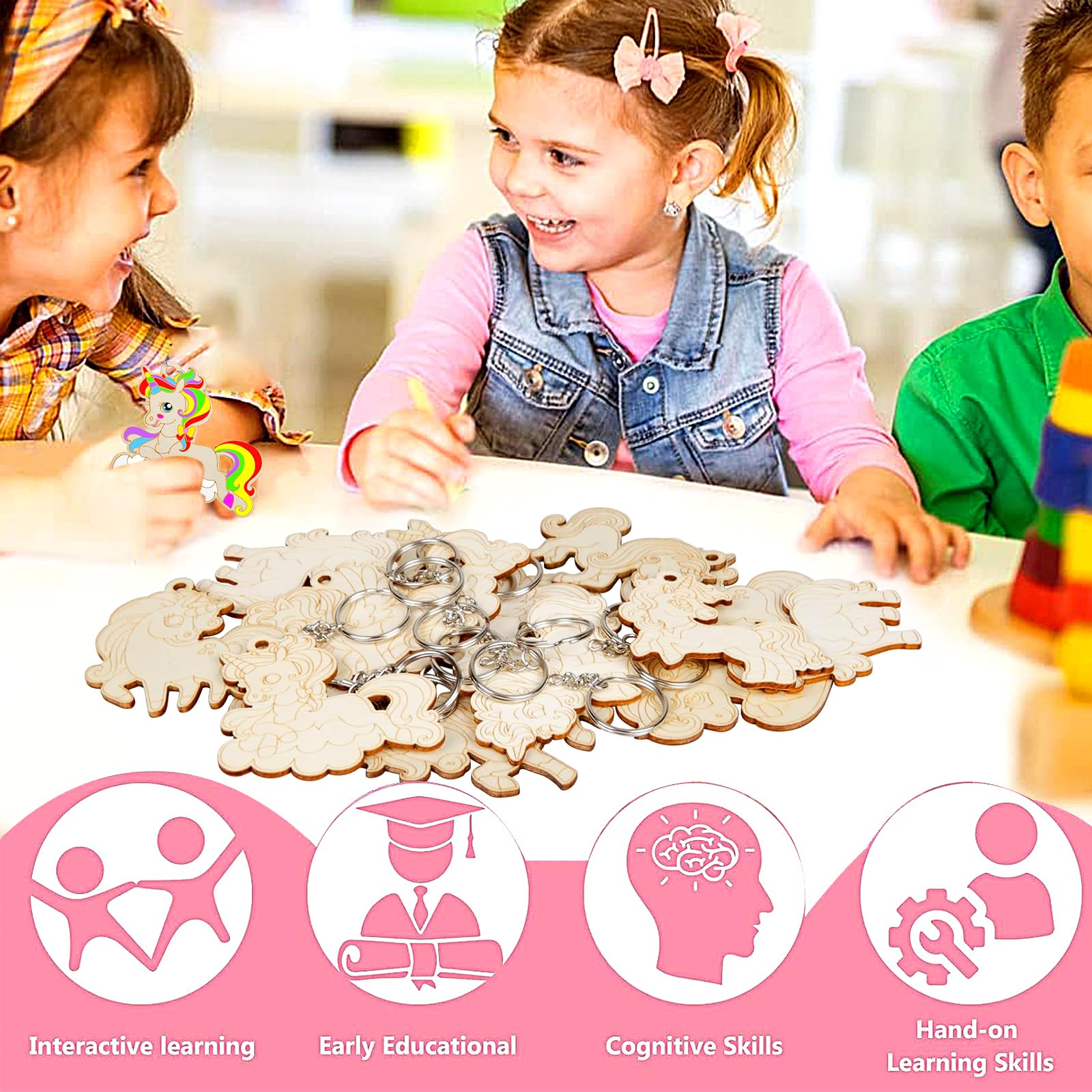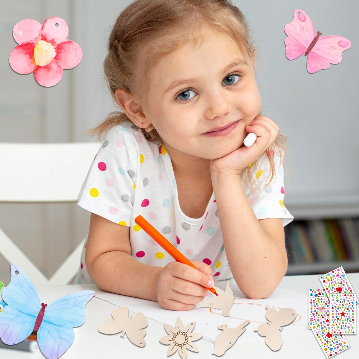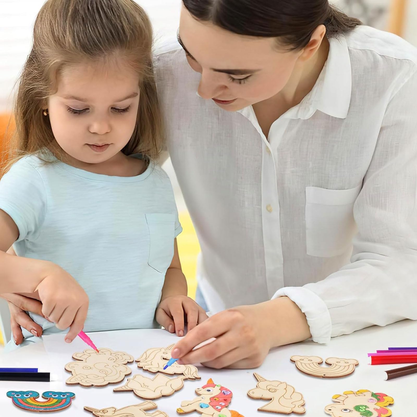 Kreativer Spaß für kleine Künstler! Dieses Barlone Bastelset enthält 48 Teile: 24 Holzanhänger in 6 verschiedenen Einhorn-Formen, 12 Aquarellstifte, 2 Diamantaufkleber und 10 bunte Aufkleber. Alles aus hochwertigem, ungiftigem Holz mit glatten Oberflächen - absolut sicher für Kinderhände. Die beidseitig bedruckbaren Anhänger regen die Fantasie an und fördern kreatives Gestalten. Perfekt für Kinder ab 4-5 Jahren - ob alleine, mit Freunden oder bei Eltern-Kind-Aktivitäten. Ideal für Kindergeburtstage, Weihnachtsbasteln, Ostern oder einfach für verregnete Nachmittage. Die fertigen Kunstwerke können mit der beiliegenden Schnur aufgehängt oder verschenkt werden. Ein pädagogisch wertvolles Spielzeug, das Feinmotorik, Kreativität und Konzentration fördert. Mach deinem Kind eine Freude und lass der Kreativität freien Lauf - stundenlanger Bastelspaß garantiert!