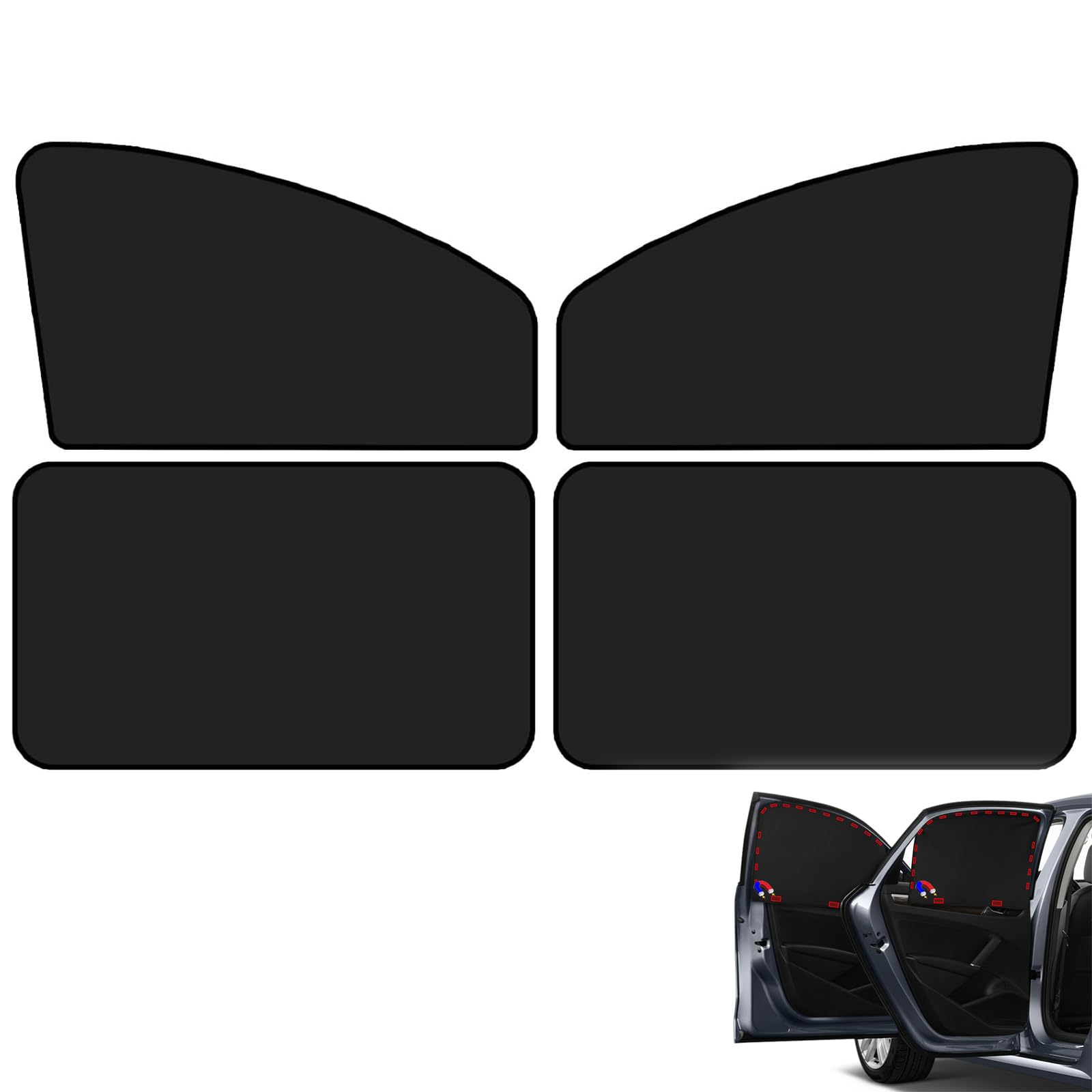 Boah, bei der Hitze im Auto ist dieser magnetische Sonnenschutz echt ein Game-Changer! Das 4-teilige Set hat für jede Scheibe was dabei: je eine Blende für Fahrer und Beifahrer, plus zwei für die Heckscheibe. Die Dinger sind mega clever mit Titan-Silber-Beschichtung, die bis zu 98% der UV-Strahlen reflektiert. Innendrin mehrlagiges Verdunkelungsgewebe - dein Auto heizt sich bis zu 15°C weniger auf! Kein Kleben nötig, einfach mit den 10 Magneten pro Vorhang an den Metallrahmen dranklackern. Super für Familien mit Kids oder Haustieren, und die Klimaanlage kann auch mal ne Pause machen. Sogar nachts praktisch, weil's die Scheinwerfer der anderen abdunkelt. Passt an fast alle Autos - ob Pkw, SUV oder Transporter. Einfach ausprobieren und den Sommer genießen!