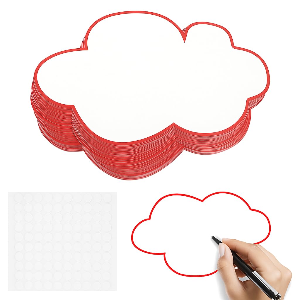 Ob im Meeting, Workshop oder im Unterricht - diese Moderationskarten in Wolkenform sind deine perfekten Begleiter! Das Set enthält 50 Karten in fünf Farben (Grün, Gelb, Rot, Orange, Lila) plus eine Extra-Karte. Mit den Maßen 23x14 cm bieten sie genug Platz für deine Notizen, Ideen und Strukturen. Das coole Feature: Jede Karte hat selbstklebendes Klettband auf der Rückseite. So haften sie sicher an Flipcharts, Whiteboards oder Wänden, lassen sich aber auch rückstandslos wieder entfernen. Perfekt für dynamische Brainstorming-Sessions oder um Abläufe visualisieren. Die Karten sind aus hochwertigem, robustem Material gefertigt - sie gehen so schnell nicht kaputt. Ob für die Büro-Präsentation, die Seminargruppe oder die nächste Moderation - mit diesen Karten behältst du den Überblick und bringst Ordnung in deine Gedanken. Praktisch, vielseitig und sofort einsatzbereit!