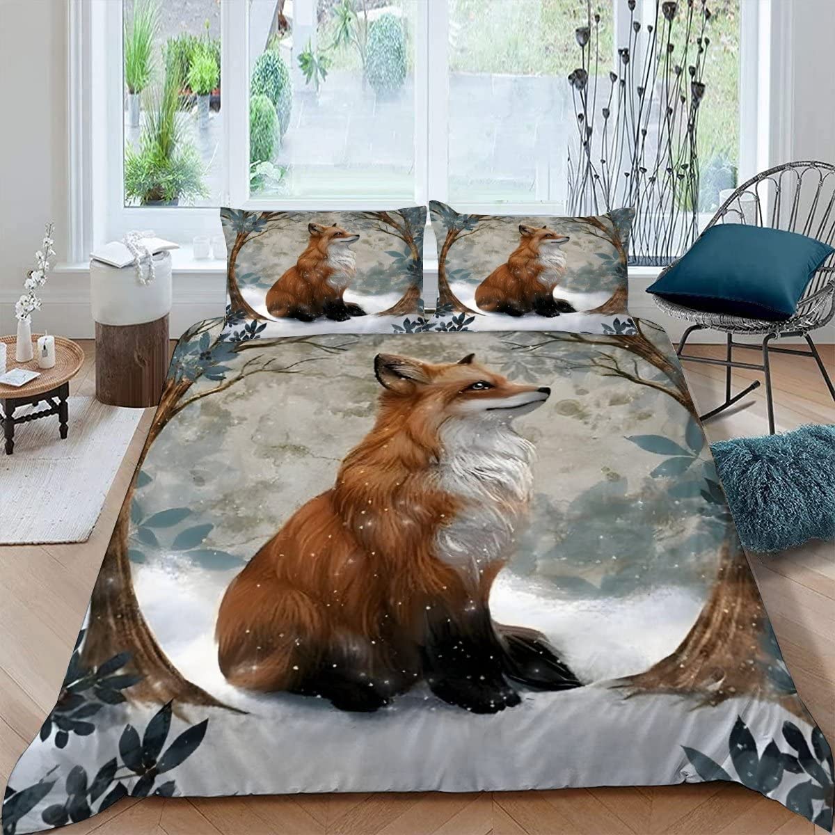 Fuchs Bettwäsche 135x200 2-tlg - Weiche Mikrofaser Mit Botanischem Motiv