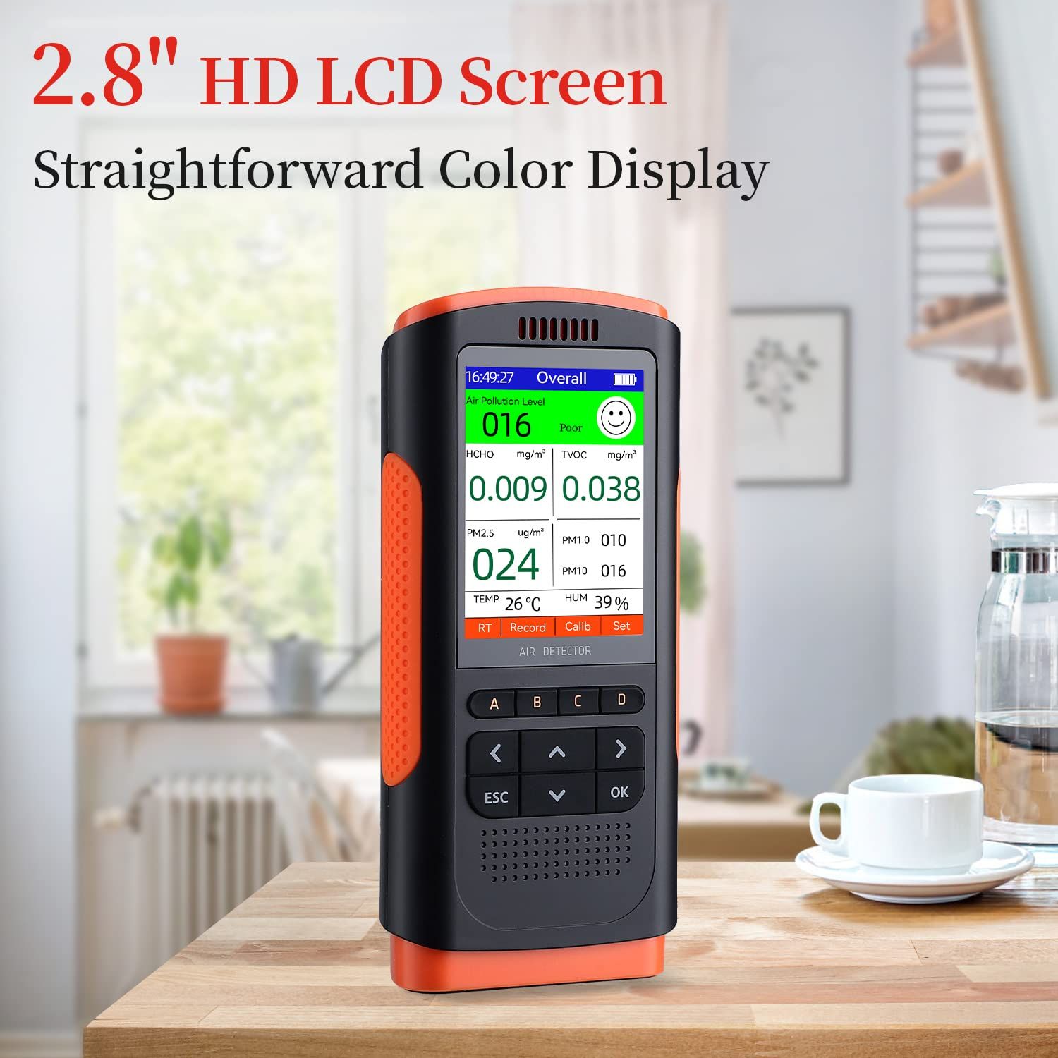 Saubere Luft? Check! Dieser kompakte Luftqualitätsmesser von Fafeicy zeigt dir sofort, was du atmest. Misst HCHO, TVOC, PM2.5 und PM10 - alles wichtige Werte für gesunde Raumluft. \\n\\nSuper praktisch: Nur 1200mAh Lithium-Ionen-Akku, 4 Stunden Ladezeit und bis zu 6 Stunden Betrieb. Das farbige LCD-Display zeigt alle Werte klar und übersichtlich an. \\n\\nPerfekt für Zuhause, Auto, Wohnwagen oder Camping. Überall dort, wo du wissen willst, ob die Luft in Ordnung ist. Besonders wichtig für Schlafzimmer und Kinderzimmer! \\n\\nMit intelligenten Halbleitersensoren für genaue Messungen. Nur 120 Sekunden Vorheizzeit und schon liefert er zuverlässige Werte. Einfache Bedienung - einfach einschalten und losmessen. \\n\\nIm Lieferumfang: Messgerät, Ladegerät, Aufbewahrungstasche und Anleitung. So behältst du immer den Überblick über deine Raumluft - für mehr Wohlbefinden und Gesundheit!