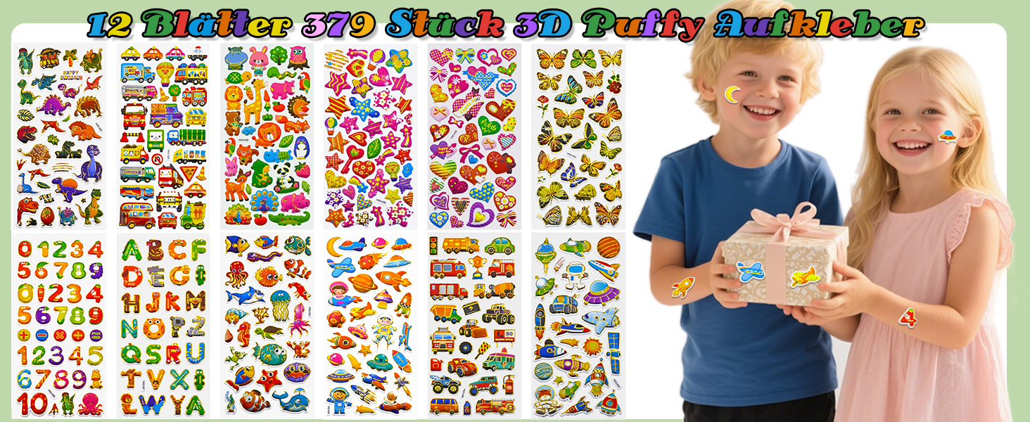 Liebt deine Tochter bunte Sticker? Dieses 3D Glitzer-Sticker-Set wird sie begeistern! 12 verschiedene Motive mit Süßigkeiten, Eisprinzessinnen, Regenbögen und mehr. Die Sticker sind doppellagig mit Glitzer in der Mitte - beim Schütteln rascheln sie wunderbar! Aus ungiftigem, wasserfestem Material - sicher für Kinder. Super haftend aber rückstandslos entfernbar. Perfekt für Tagebücher, Schulhefte, Trinkflaschen oder als Belohnung. Jeder Sticker einzeln verpackt - ideal als Mitgebsel oder für die Schatztruhe. Wenn dein Kind kreativ ist und gerne dekoriert, sind diese Sticker genau das Richtige! Als Geburtstagsgeschenk, für die Party oder einfach so - damit machst du jedes Mädchen glücklich!