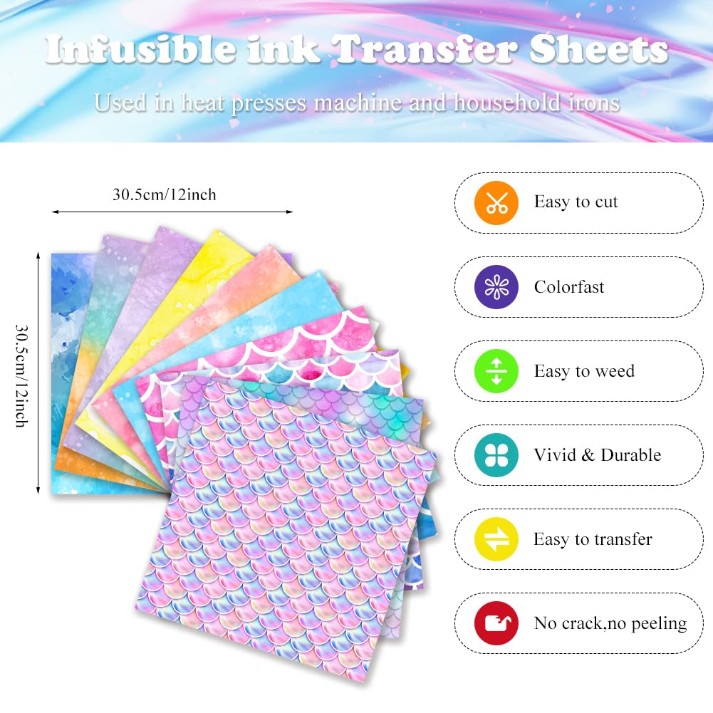 Kreativ sein war noch nie so einfach! Mit diesen Sublimations Transferfolien machst du aus langweiligen T-Shirts, Tassen und anderen Sachen echte Unikate. Das Set hat 10 Blätter in 11,5x30,5cm - perfekt für alle möglichen DIY-Projekte. Einfach Design mit ner Schneidemaschine ausschneiden, auf hellen Stoff oder Keramik legen und bei 195-205°C für 40-60 Sekunden pressen. Die Farben werden nach dem Erhitzen richtig knallig und lebendig! Das Beste: Die Motive blättern nicht ab und reißen nicht - auch nach zig Waschgängen nicht. Perfekt für T-Shirts, Tassen, Untersetzer, Handyhüllen und vieles mehr. Die PET-Schutzfolie macht das Schneiden supereinfach. Ob für dich selbst, als Geschenk oder für nen kleinen Nebenverdienst - mit diesen Transferfolien kannst du deine Kreativität komplett ausleben. Einfach mal ausprobieren und staunen, was du alles selbst gestalten kannst! DIY-Spaß pur für alle, die gerne basteln und individuelle Sachen lieben.