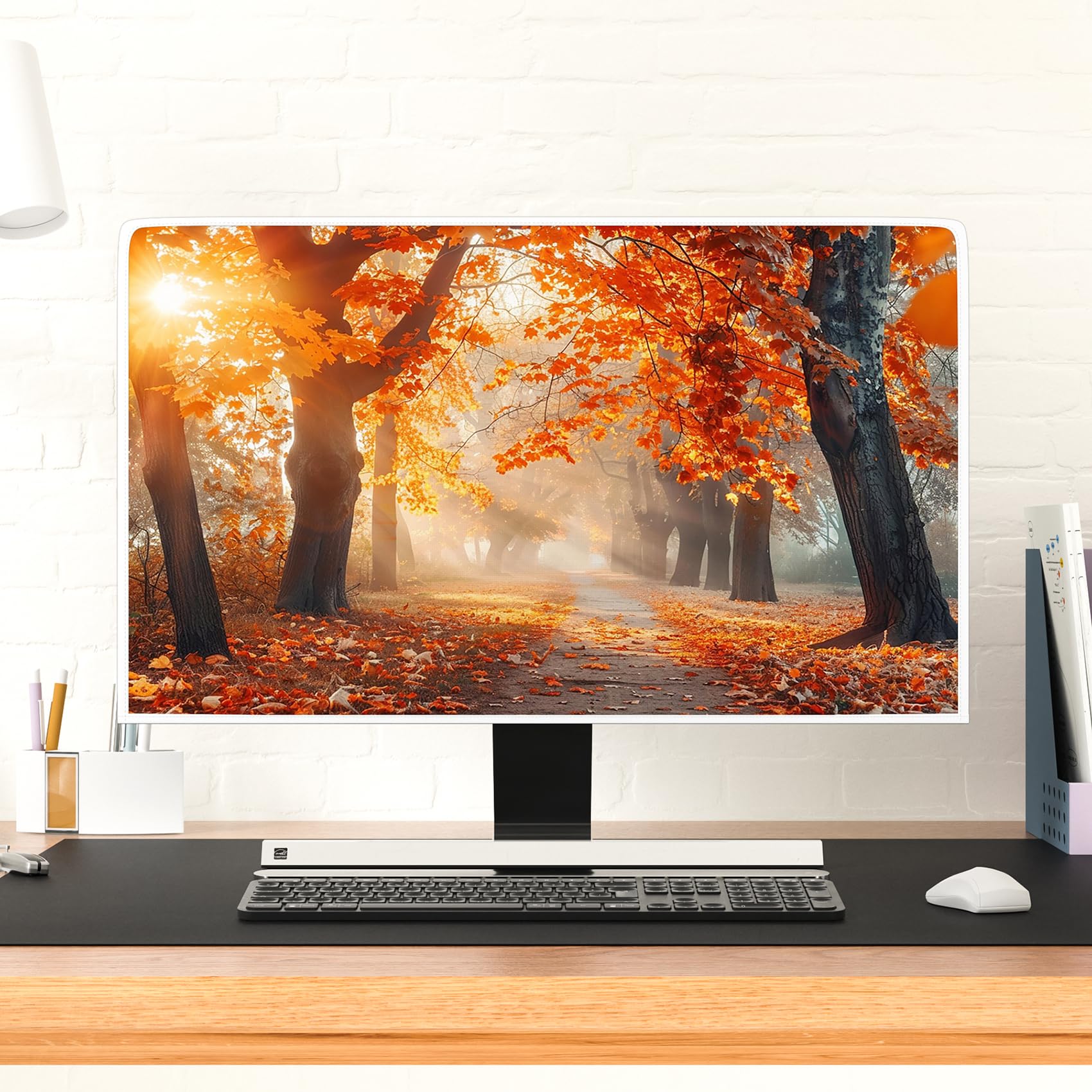 Schluss mit Staub und Fingerabdrücken auf deinem teuren Monitor! Diese niedliche Abdeckung mit Ahornblatt-Muster schützt deinen Bildschirm zuverlässig - egal ob PC, Laptop oder Fernseher. Passt perfekt auf 55-63,5 cm (22-25 Zoll) Geräte, auch gebogene Modelle sind kein Problem. Das Stoffmaterial ist komplett vernäht und sieht nicht nur hübsch aus, sondern hält auch ewig. Einfach über den Monitor stülpen - die offene Rückseite macht's kinderleicht. Wenn du sie mal nicht brauchst, lässt sie sich platzsparend zusammenfalten. Und waschbar ist sie auch! Perfekt fürs Homeoffice oder Wohnzimmer. Mach deinen Arbeitsplatz doch mal etwas gemütlicher - diese Abdeckung ist praktisch UND dekorativ zugleich. Übrigens: Ein super Geschenk für Kollegen oder Freunde, die auch immer gegen Staub kämpfen müssen!