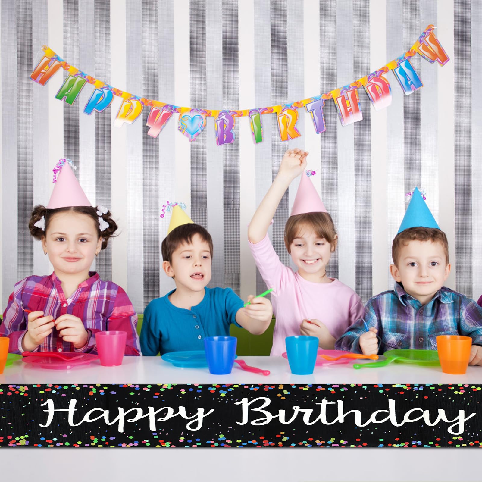 Plant ihr eine Geburtstagsfeier? Dieser Tischläufer macht eure Deko komplett! Mit 183cm Länge und 33cm Breite passt er perfekt auf einen Tisch für 4-6 Personen. Aus hochwertigem Leinen gefertigt, das rutschfest und hitzebeständig ist. Das fröhliche \Herzlichen Glückwunsch zum Geburtstag\-Design sorgt für sofortige Partystimmung. Die Farben sind kräftig und verblassen nicht - könnt ihr also bei der nächsten Feier wieder verwenden. Praktisch: Der Läufer schützt euren Tisch vor Flecken, Kratzern oder Verschüttungen. Einfach ausbreiten und schon sieht eure Feier viel festlicher aus! Ideal für drinnen und draußen - ob im Garten, im Wohnzimmer oder im Restaurant. Leicht zu reinigen, einfach in der Maschine waschbar. Macht jedes Geburtstagsessen zu einem besonderen Event. Eure Gäste werden begeistert sein! Übrigens: Passt auch super auf Kommoden oder Couchtische als Deko-Element. Einfach, aber wirkungsvoll - so sollte Partydeko sein!