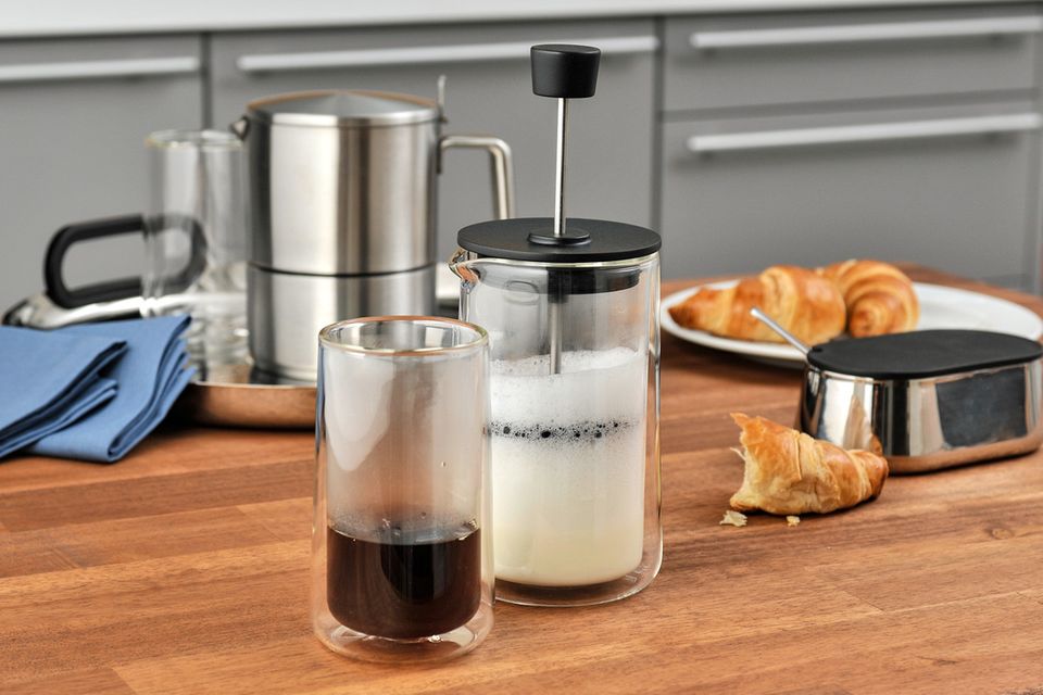 Cremiger Milchschaum ganz ohne Strom! Dieser manuelle Milchaufschäumer von Jiadiru fasst 800ml und ist damit perfekt für Familien oder kleine Partys. Aus doppelschichtigem Edelstahl gefertigt - robust, langlebig und einfach zu reinigen. So funktioniert's: Milch einfüllen, Kolben einsetzen, Deckel schließen und den Knopf etwa 40-60 Sekunden auf und ab bewegen. Schon hast du perfekten Schaum für deinen Cappuccino, Latte oder heißen Kakao. Funktioniert mit allen Milchsorten - von Vollmilch über Magermilch bis zu Mandel-, Soja- oder Hafermilch. Ohne Strom oder Batterien - ideal für Camping, Büro oder unterwegs. Mit 520g Gewicht und ca. 10x19,7cm Maßen handlich und platzsparend. Der Edelstahl sieht nicht nur hochwertig aus, sondern ist auch spülmaschinenfest (obwohl Handwäsche empfohlen wird). Perfekt für alle Kaffeeliebhaber, die ihren Schaum selbst machen wollen. Viel günstiger als elektrische Aufschäumer und genauso effektiv. Einfach ausprobieren und sich über professionellen Milchschaum freuen - dein Morgenkaffee wird nie wieder derselbe sein!