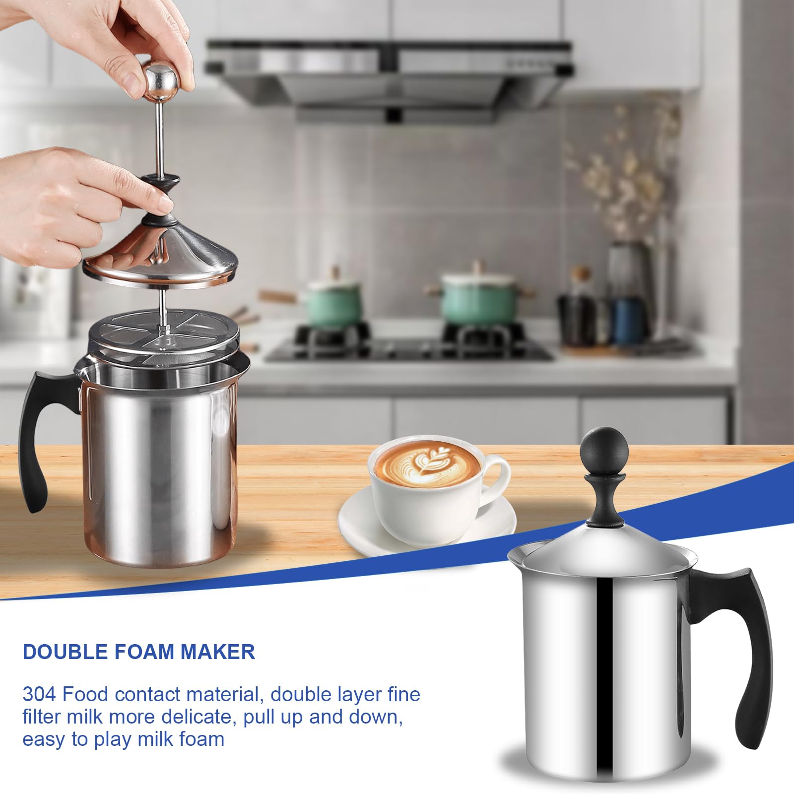 • Manueller Milchaufschäumer Aus Edelstahl - Für Cappuccino & Latte Macchiato