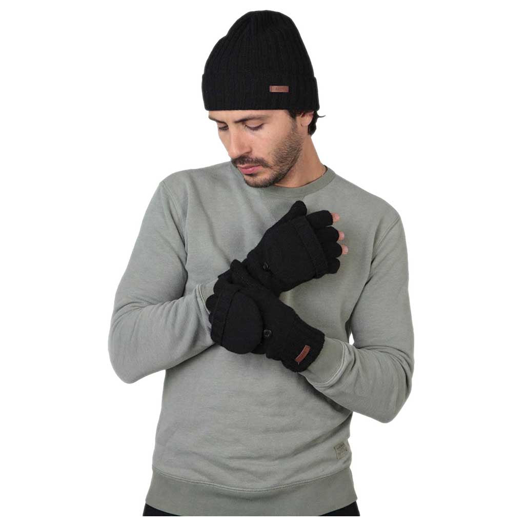 Brrr, ist das kalt! Aber mit diesen cleveren Barts Handschuhen musst du dich nicht mehr zwischen Fäustlingen und Fingerhandschuhen entscheiden. Einfach die Fingerkappen umklappen und mit dem Knopf fixieren - schon hast du warme Fäustlinge! Und wenn du mal was Greifen musst, klappst du sie einfach wieder hoch. Der Daumen bleibt immer bedeckt, also friert er nicht ein. Innen ist weiches Fleece-Futter - total kuschelig und warm! Aus 95% Schurwolle und 5% Leder gefertigt, sind sie atmungsaktiv und neutralisieren Gerüche. Die neue Handfläche gibt dir einen super Griff, egal ob du den Schlüssel drehst oder den Einkaufsbeutel trägst. Für Damen und Herren gleichermaßen geeignet. Perfekt für den Winter - ob beim Spaziergang, Skifahren oder einfach nur auf dem Weg zur Arbeit. Deine Hände bleiben warm und du bleibst flexibel! Einfach Handwäsche und sie sehen aus wie neu.