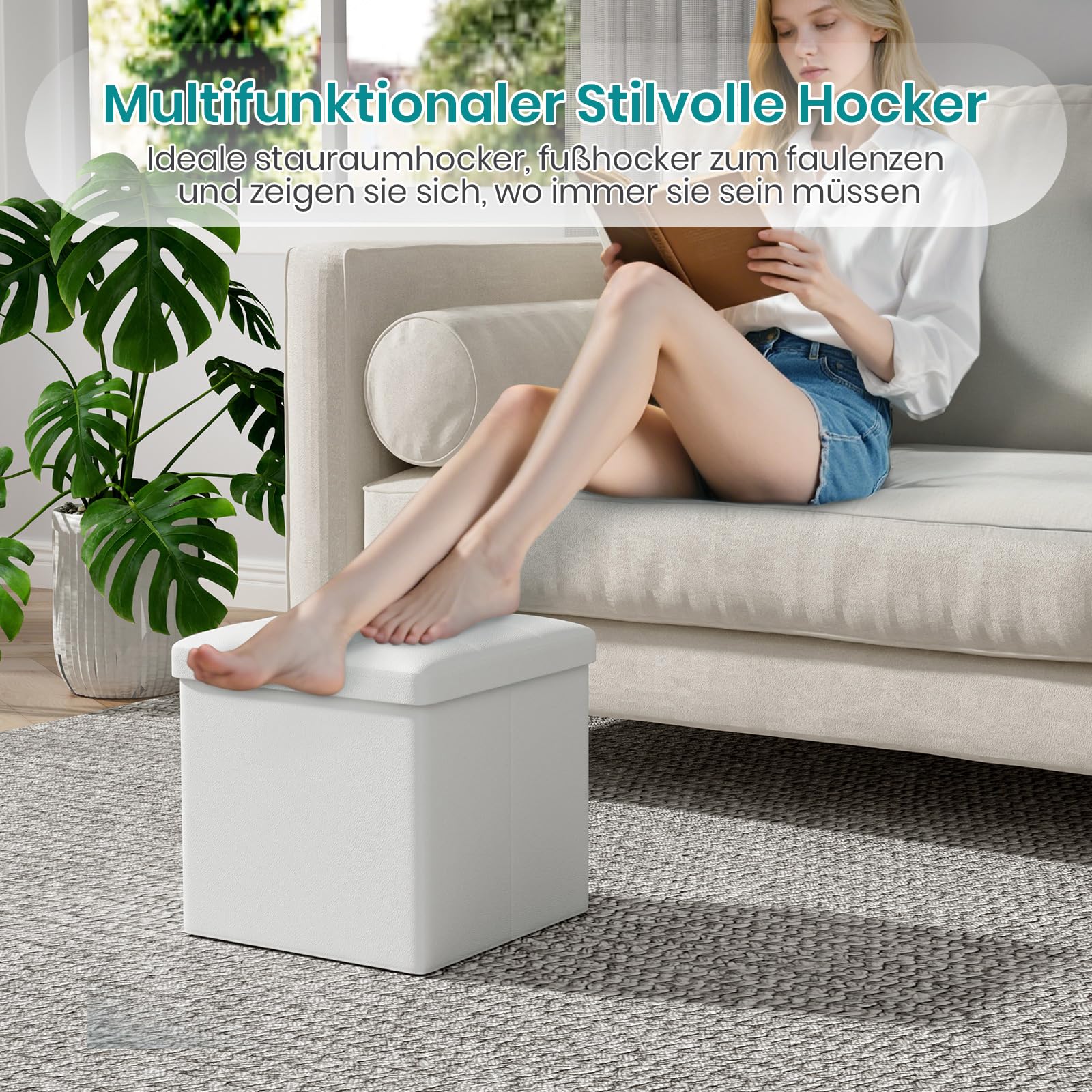 Dieser Sitzhocker von Oak & Tea ist echt clever! 30x30x30cm groß, in schwarz, mit verstecktem Stauraum drinnen. Perfekt als Fußhocker, Sitzbank oder Aufbewahrungsbox. Deckel mit weichem Schaumstoff - super bequem zum Sitzen. Bis 120kg belastbar, also wirklich stabil. Einfach zusammenzuklappen und platzsparend zu verstauen. Ideal für Wohnzimmer, Schlafzimmer oder Flur. Verstau darin Decken, Spielzeug, Bücher oder was auch immer. Ein Möbelstück mit echtem Mehrwert - stylisch und praktisch zugleich!