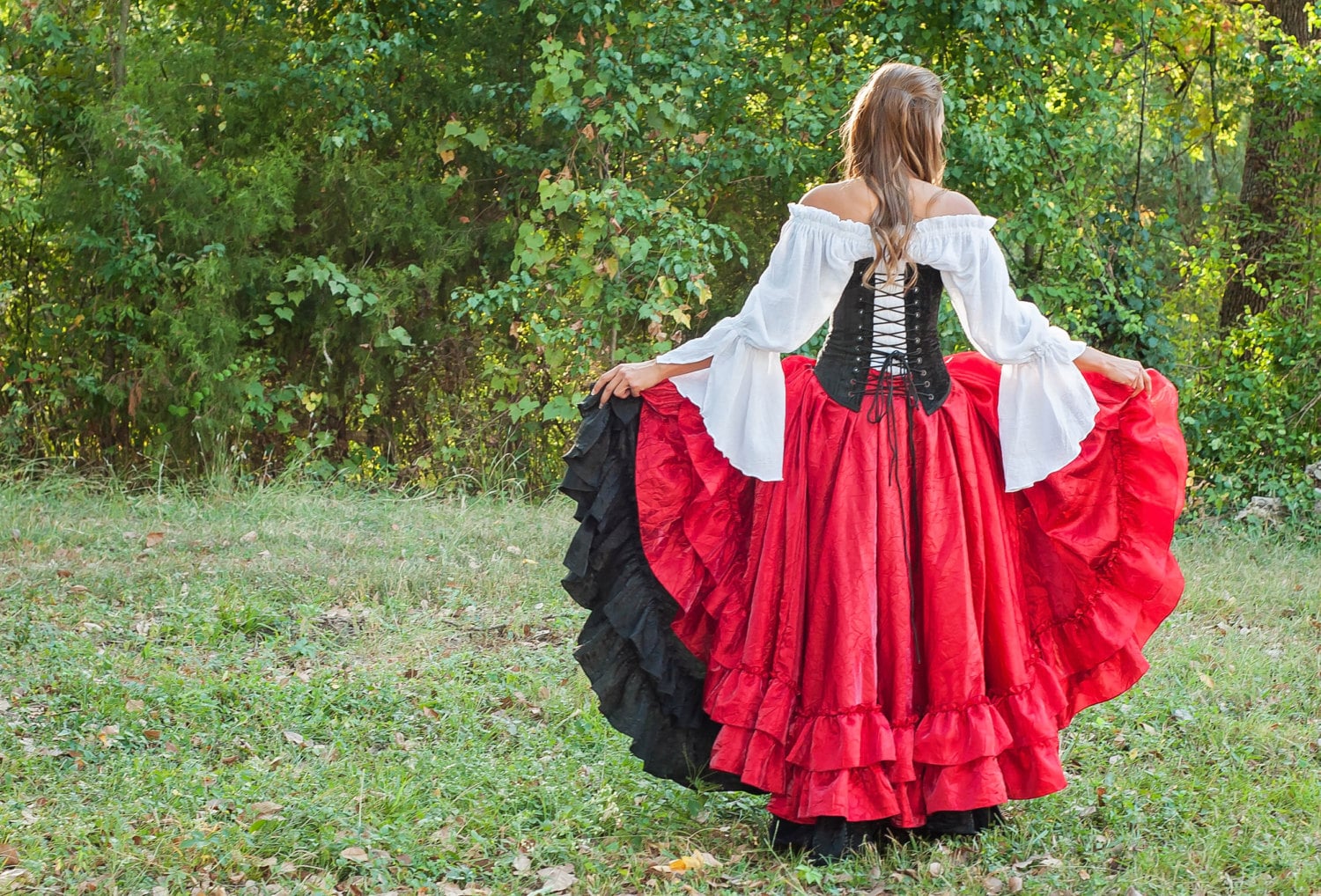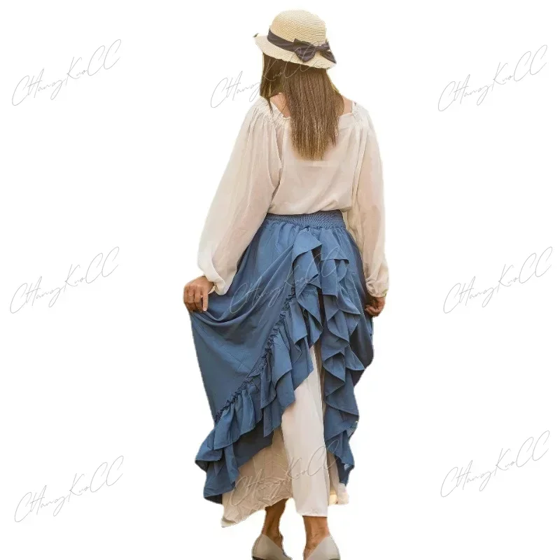 Tauch ein in die Welt von Steampunk und Mittelalter! Dieser wunderschöne Maxirock in A-Linie ist doppellagig und hat einen elastischen Bund mit verstellbarer Kordelzug-Schnürung. Der gerüschte Saum verleiht ihm einen romantischen, vintage Look. Aus weichem, atmungsaktivem Stoff der angenehm zu tragen ist und kaum knittern will. Perfekt für Mittelalter-Märkte, Renaissance-Feste, Gothic-Partys oder einfach als besonderes Alltags-Outfit. Kombiniere ihn mit Corsagen, Blusen oder Lederwesten für den perfekten Vintage-Look. Auch super als Halloween-Kostüm oder für Mottopartys! Die Länge lässt sich durch die Schnürung anpassen - so wird der Rock genau dein Style. Such dir deine Größe aus und werde zur Königin der Fantasy-Welt!