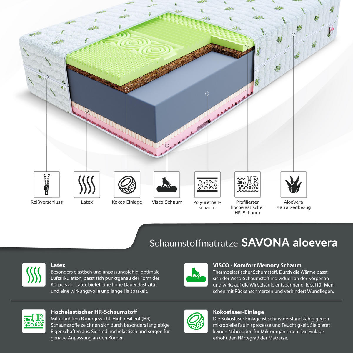 Alanpur Vita Soft Kaltschaummatratze H2 - 90x200cm, Aloe Vera Bezug, Made In Germany