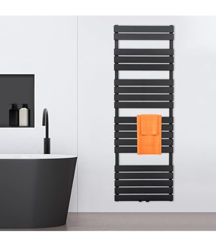 Dieser SMYRNA Plus Badheizkörper ist ein echter Allrounder! Mit 1200 mm Breite und 800 mm Höhe bietet er reichlich Platz für deine Handtücher. Die 14 Heizrohre (Ø25 mm) und D-Profil-Stäbe (30x40 mm) sorgen für effiziente Wärmeabgabe - ganze 871 Watt bei 75/65/20°C!\n\nHergestellt aus Qualitätsstahl mit hoher Wärmeleitfähigkeit, ist er für max. 110°C Betriebstemperatur und 10 Bar Druck ausgelegt. Die 4 Standard-Anschlüsse (1/2 Zoll) machen die Installation einfach. Nabenabstand: 1155 mm - perfekt für die meisten Badezimmer.\n\nLieferumfang: Heizkörper, Montageset, Blindstopfen und Entlüftungsstopfen. Made in Turkey mit 5 Jahren Garantie! Optional mit Heizstab für Misch- oder Elektrobetrieb nachrüstbar. Verstellbarer Wandabstand von 55-70 mm.\n• Badheizkörper 1200x800 mm (BxH)\n• 871 Watt Wärmeleistung nach EN 442\n• 14 Heizrohre Ø25 mm, D-Profil 30x40 mm\n• 4x 1/2 Zoll Standardanschlüsse\n• Nabenabstand: 1155 mm\n• Max. 110°C, 10 Bar Betriebsdruck\n• Mit Montageset (Wandabstand 55-70 mm)\n• 5 Jahre Garantie, Made in Turkey