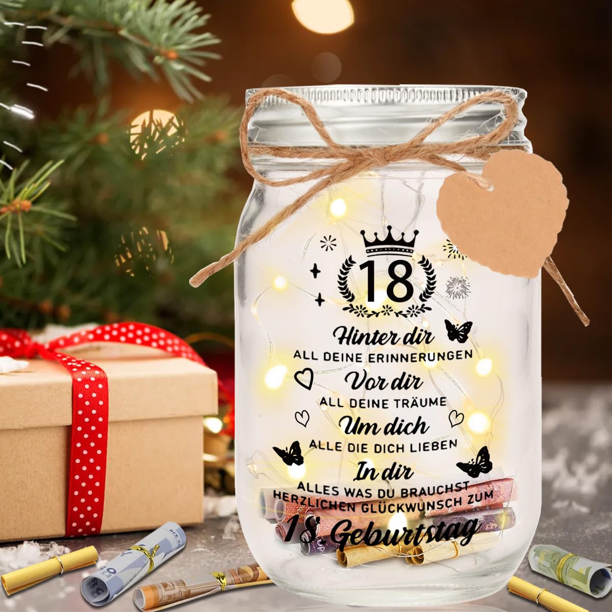Zum 18. Geburtstag mal was Anderes! Diese süße Glasflasche in Sternform mit Korken ist das perfekte kreative Geldgeschenk. Maße: 8,5x9cm - klein aber oho!