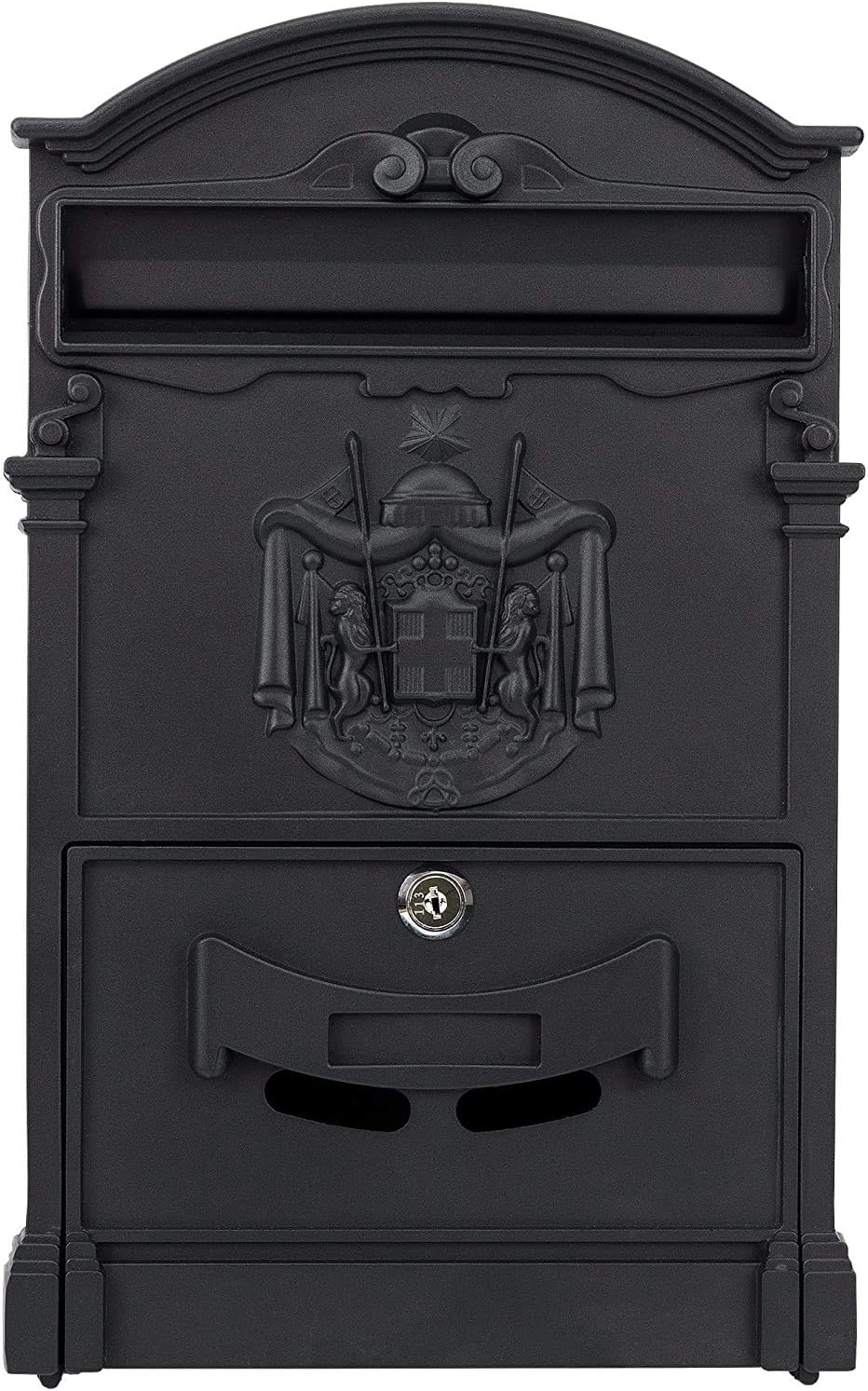 Wow, dieser Briefkasten sieht aus wie aus Omas Zeiten! Der SN3663-3 im antiken Gold-Look ist ein echter Hingucker für deine Hausfassade. Aus robustem Aluguss gefertigt und mit wunderschönem 3D-Relief verziert - da bleibt kein Nachbar stehen, ohne ihn zu bewundern. \\n\\nPraktisch ist er auch: Mit 40x25,5x9cm passt sogar A4-Post problemlos durch den extra großen Einwurf. Die beiden Sichtfenster unten verraten dir sofort, ob was drin ist. Und bei Regen? Kein Problem! Die Schutzklappe leitet das Wasser zuverlässig ab. \\n\\nFür die Sicherheit sorgt das stabile Zylinderschloss - inklusive 2 Schlüssel. Montieren geht ratzfatz dank der 4 vorgebohrten Löcher. Ob an der Hauswand, am Zaun oder Pfosten - dieser Briefkasten macht überall eine gute Figur und hält selbst extremem Wetter stand. Einfach klasse, wie viel Nostalgie-Charme in so einem praktischen Alltagsgegenstand stecken kann!